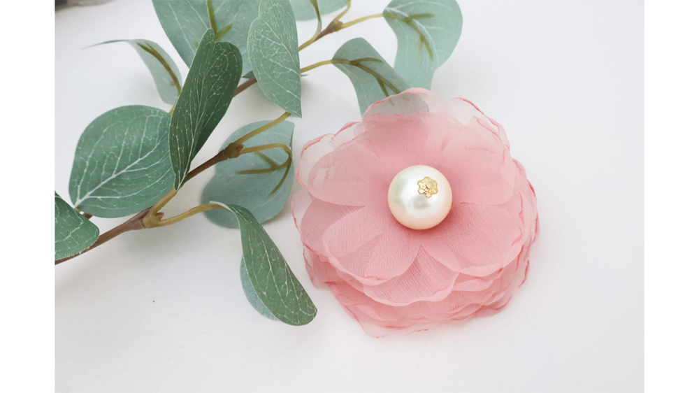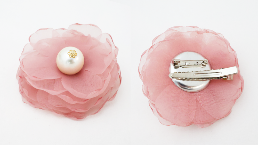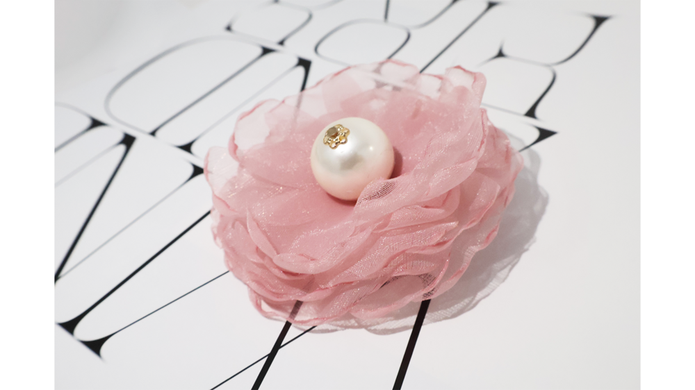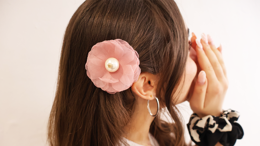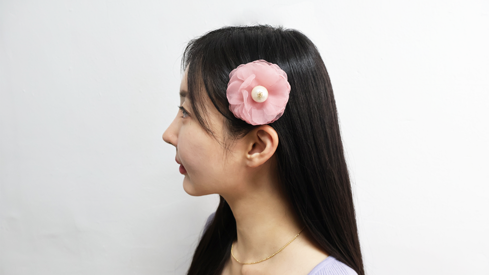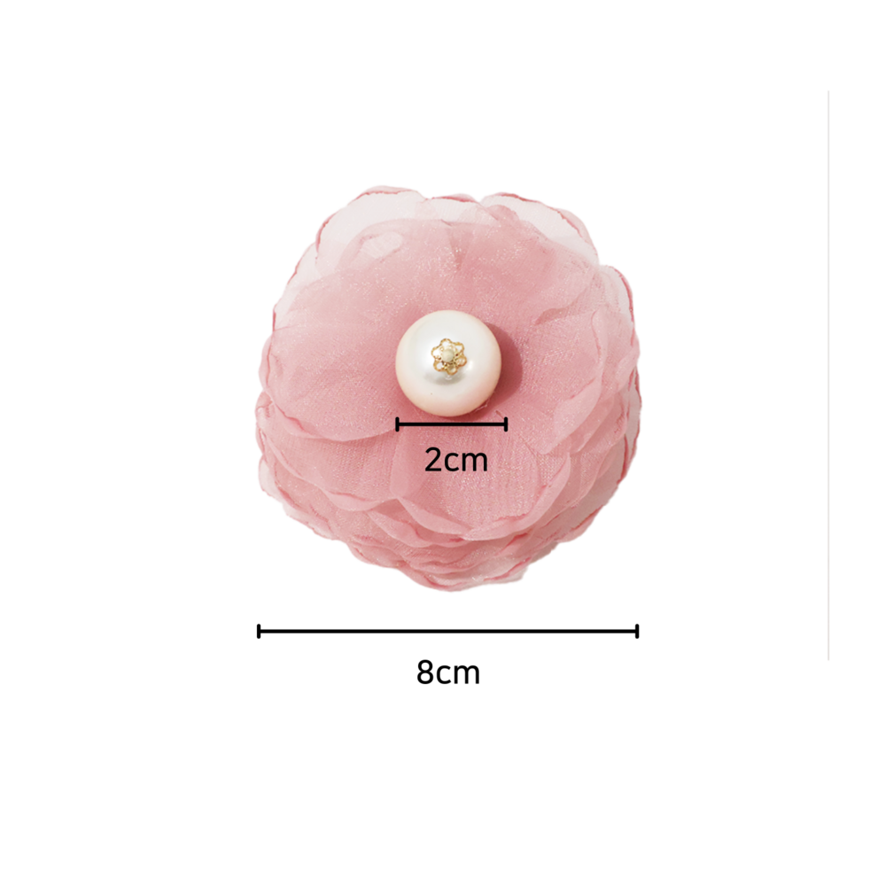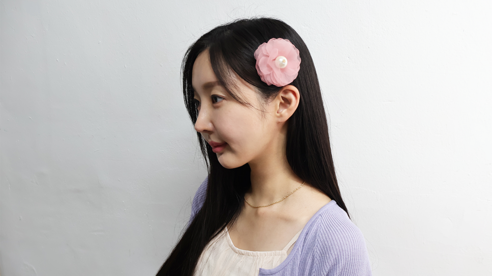 진주 장식이 포인트인 핑크 레이스 플라워 헤어 클립 입니다.