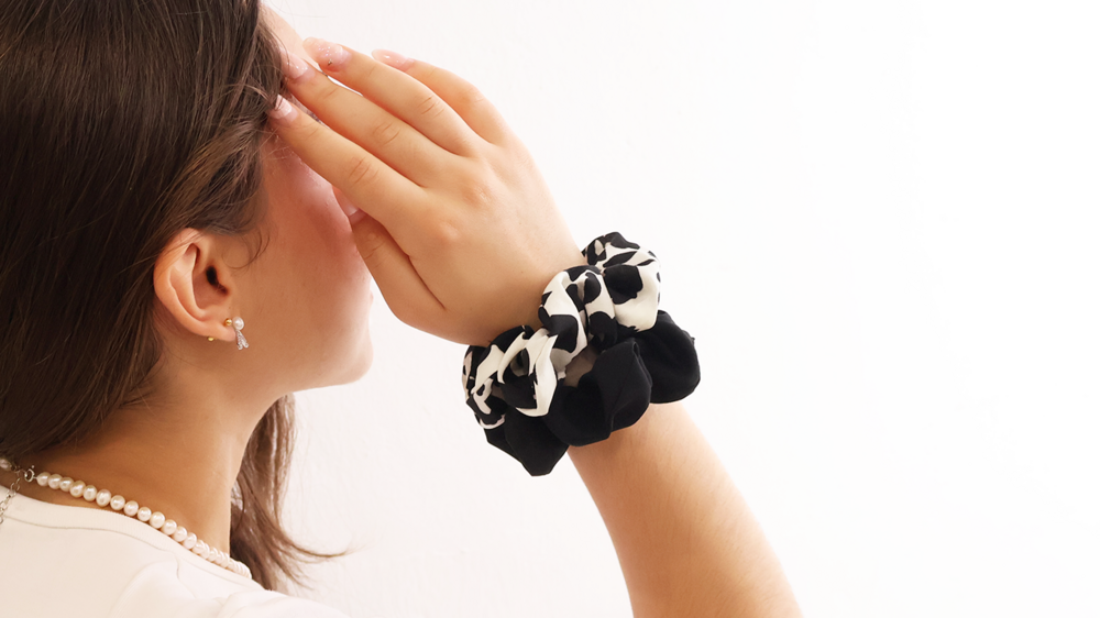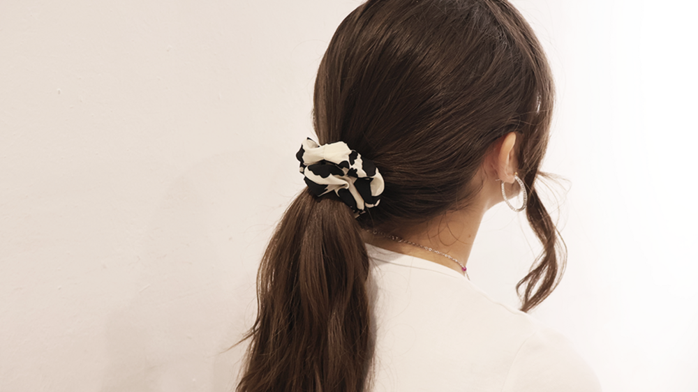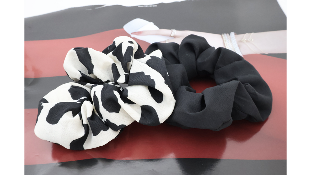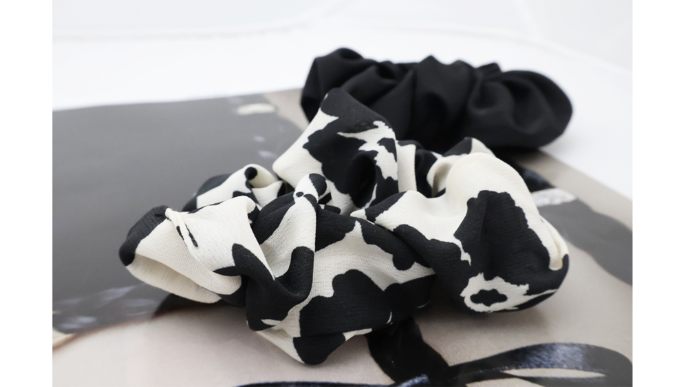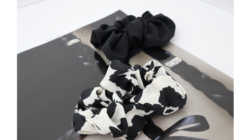 심플한 디자인의 블랙 앤 화이트 머리끈 입니다.