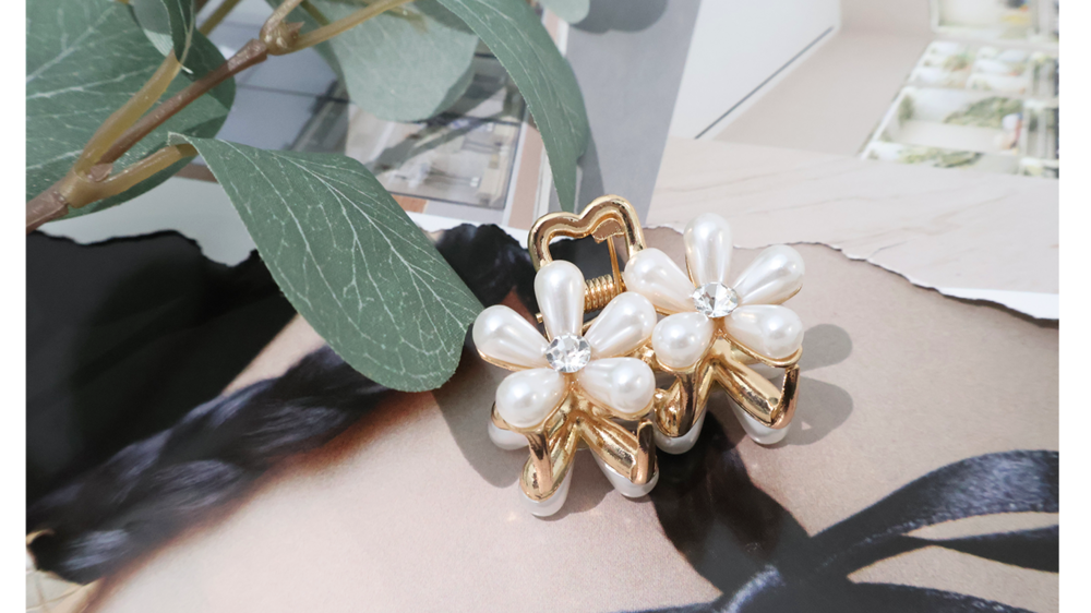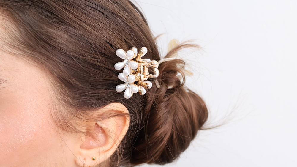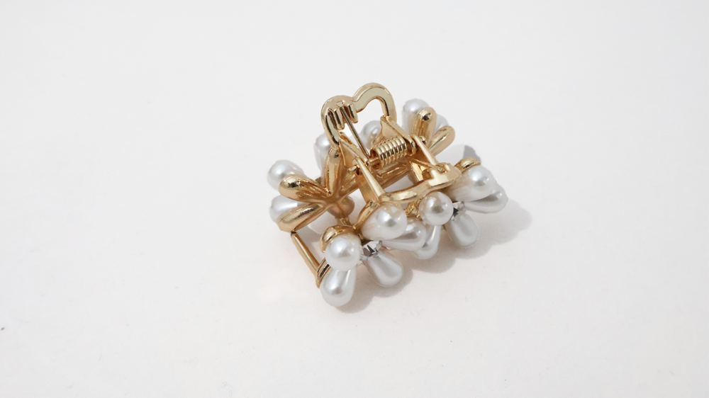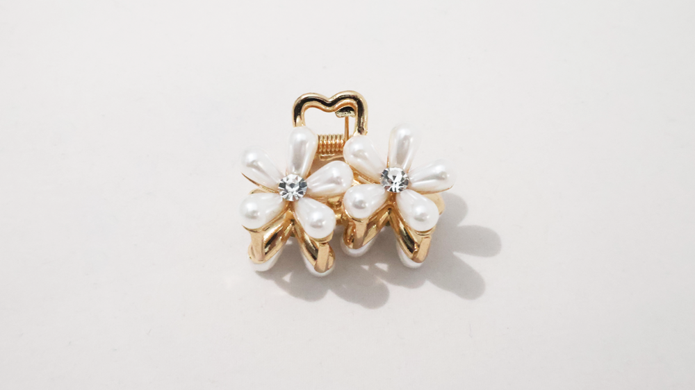 꽃잎을 닮은 진주 장식과 반짝이는 크리스탈 포인트로 섬세하고 고급스럽게 제작된 미니 플로르 집게핀 입니다.