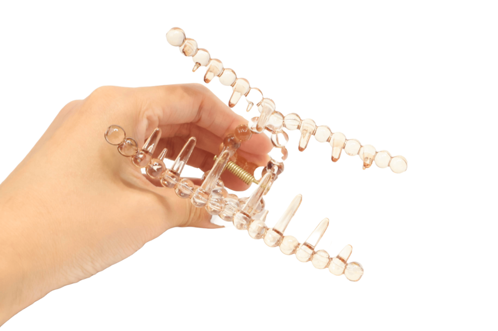 투명 소재 특유의 깔끔함으로, 어떤 색상의 의상이나 헤어 컬러에도 잘 어울립니다.