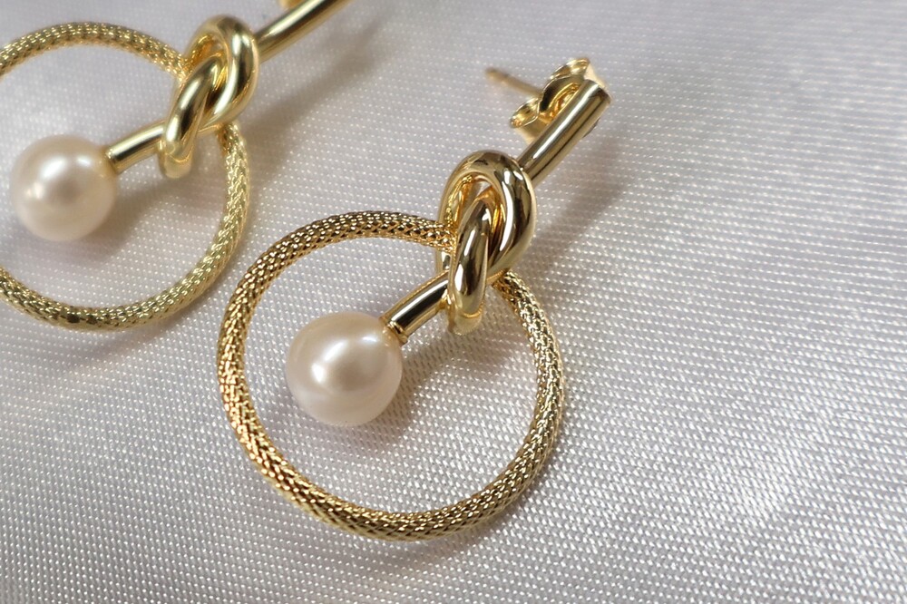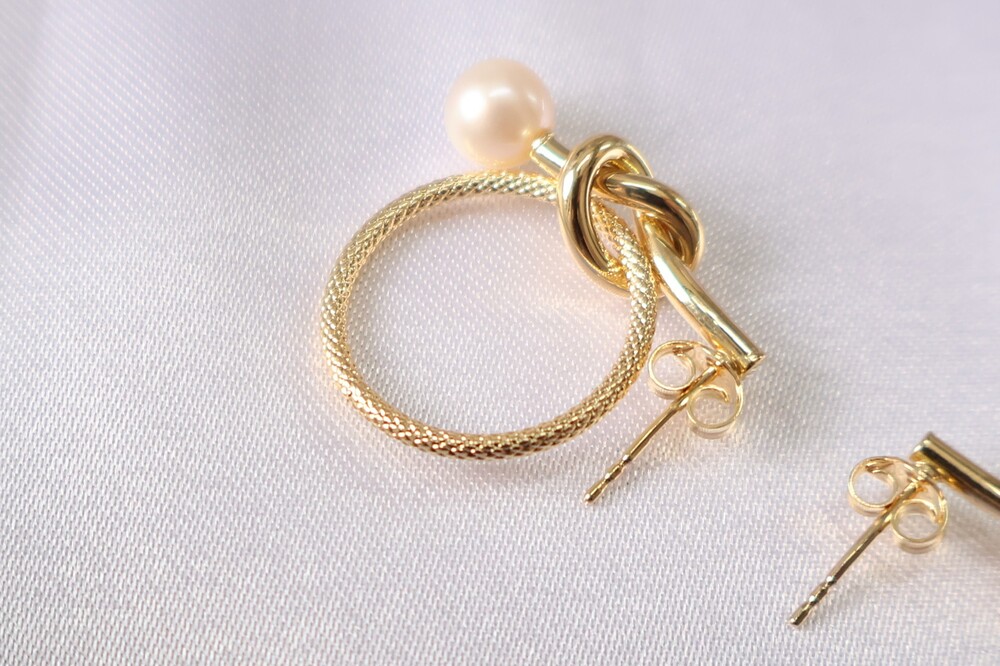 진주를 연결하는 꼬여진 형태의 이음줄은 클래식한 무드에 유니크한 감각을 더해주며,
