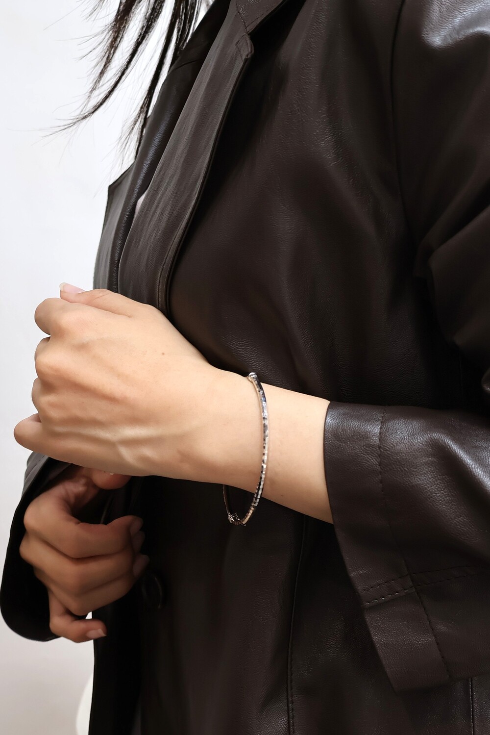 실버 925 소재로 제작된 커브 체인 스타일의 팔찌로, 표면에 다이아 컷팅 가공을 더해