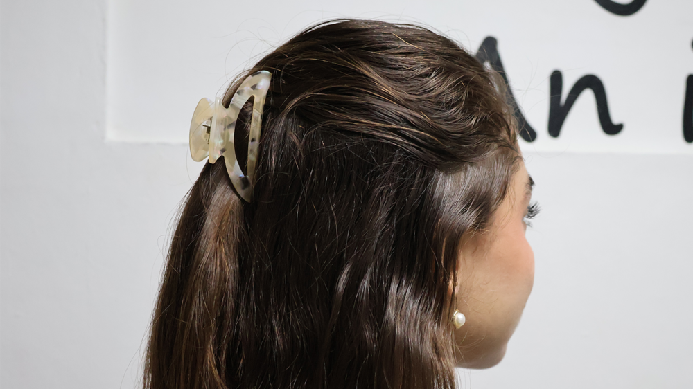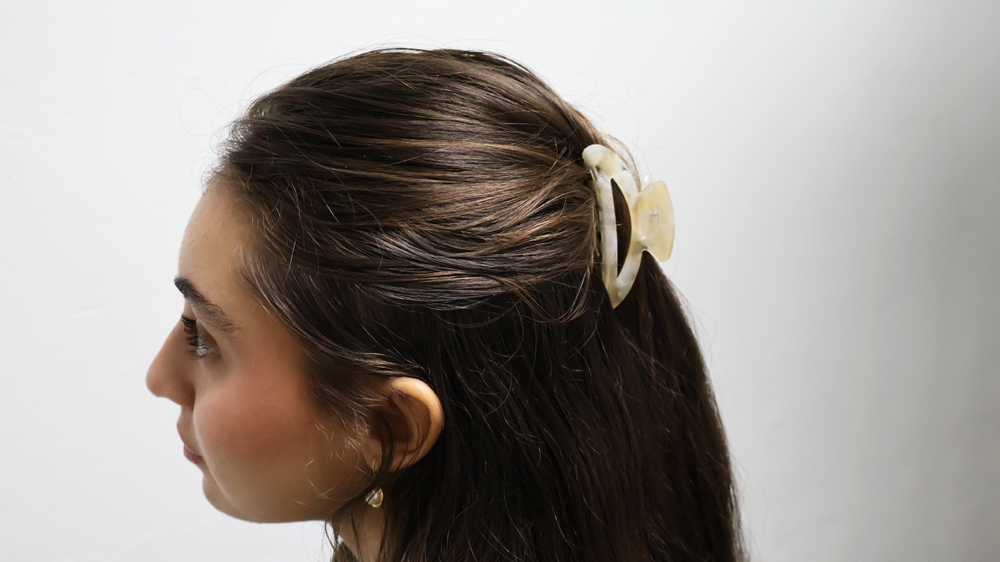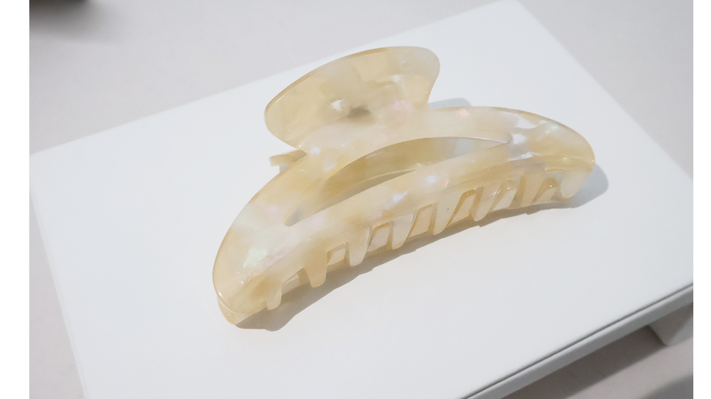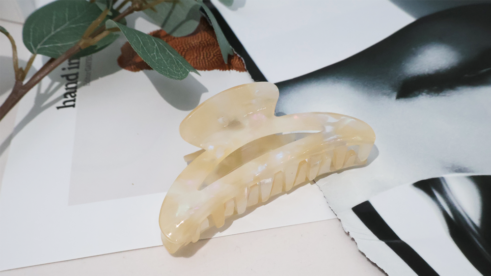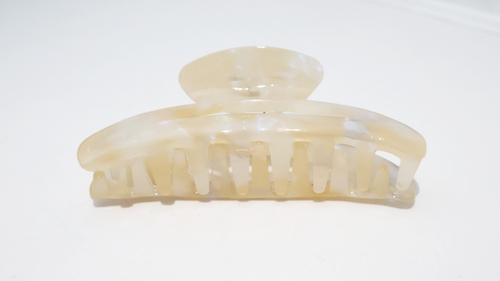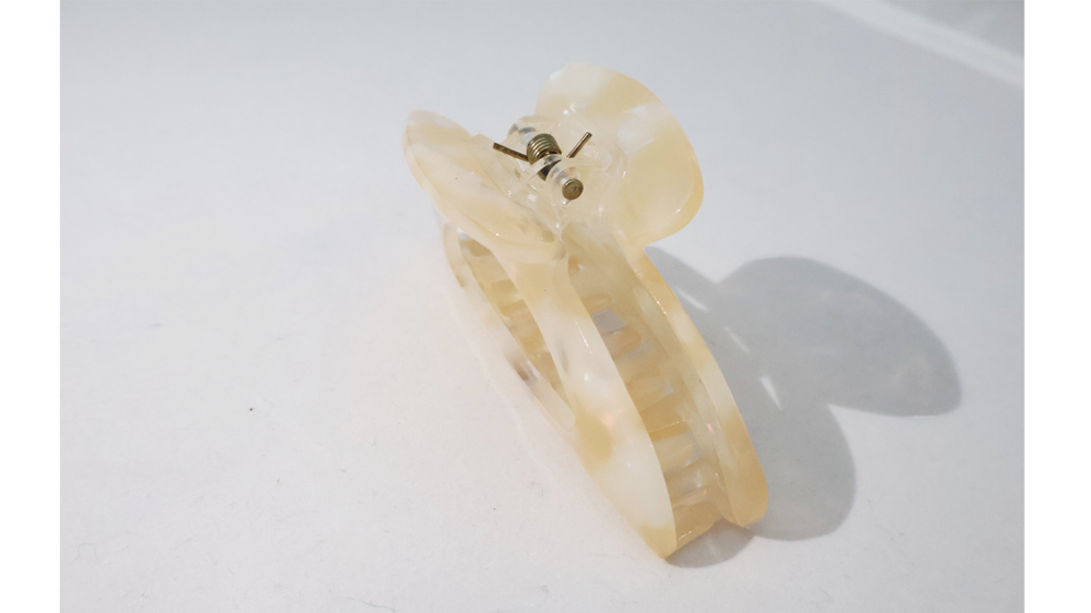 반투명한 진주빛 베이지 컬러가 특징인 집게핀 입니다.