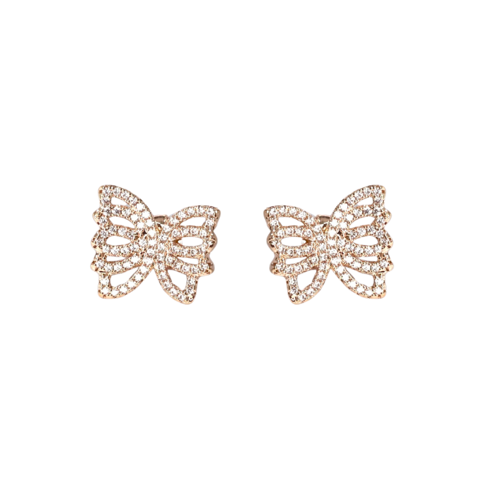 "나비가 날개를 펼친 듯한 우아한 쉐입의 로즈골드 귀걸이"