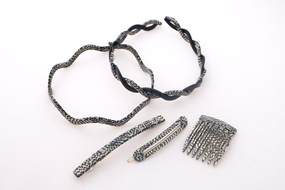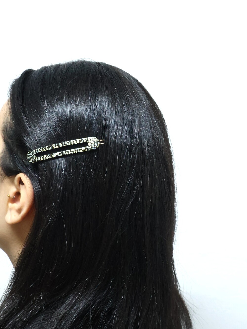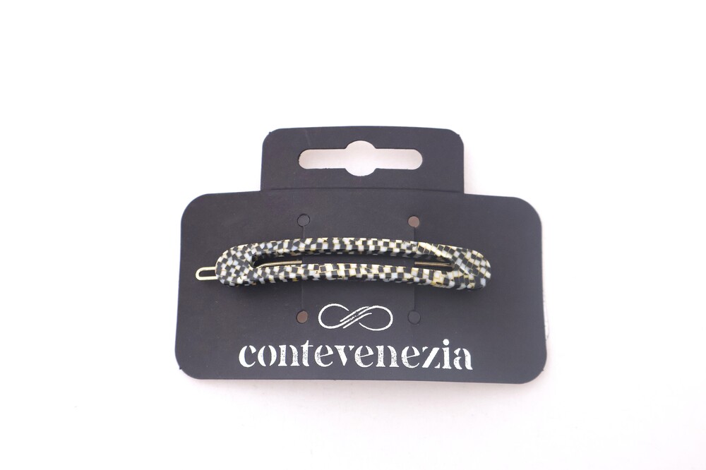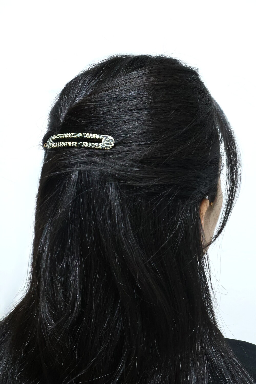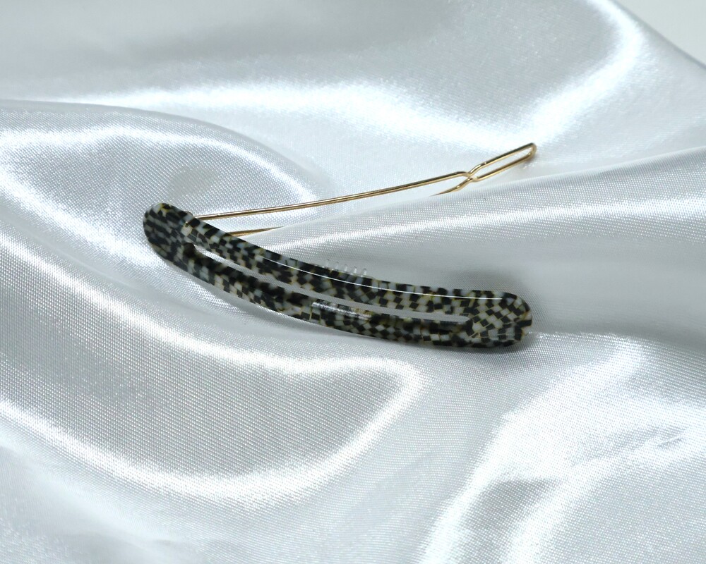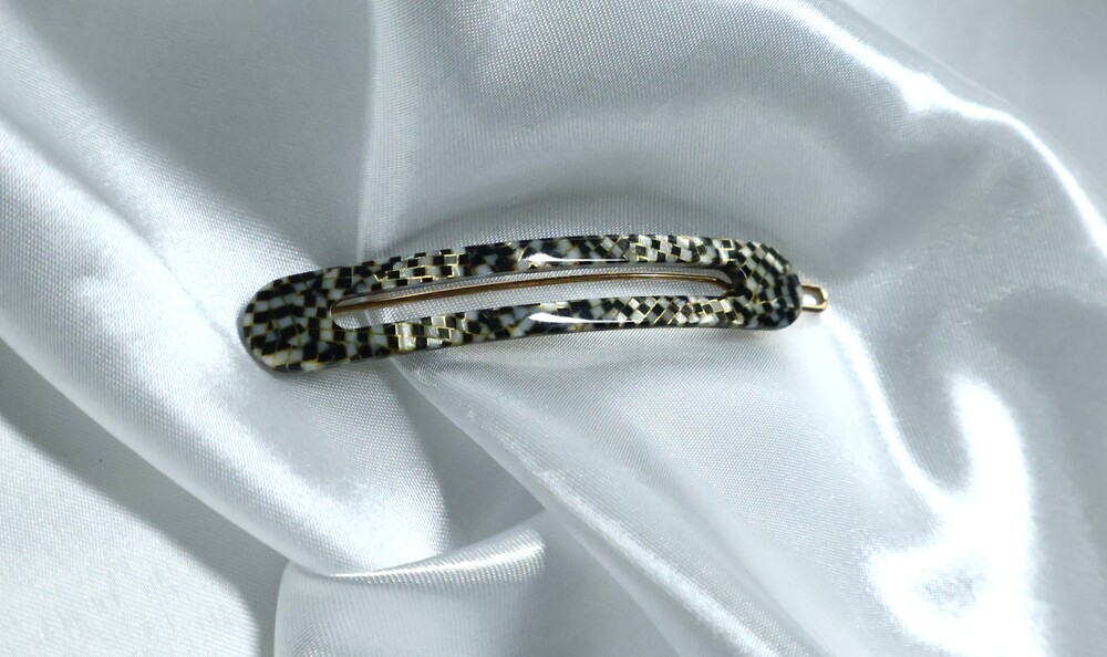 오벌 쉐입에 감각적인 모자이크 패턴이 더해진 세련된 헤어클립입니다.