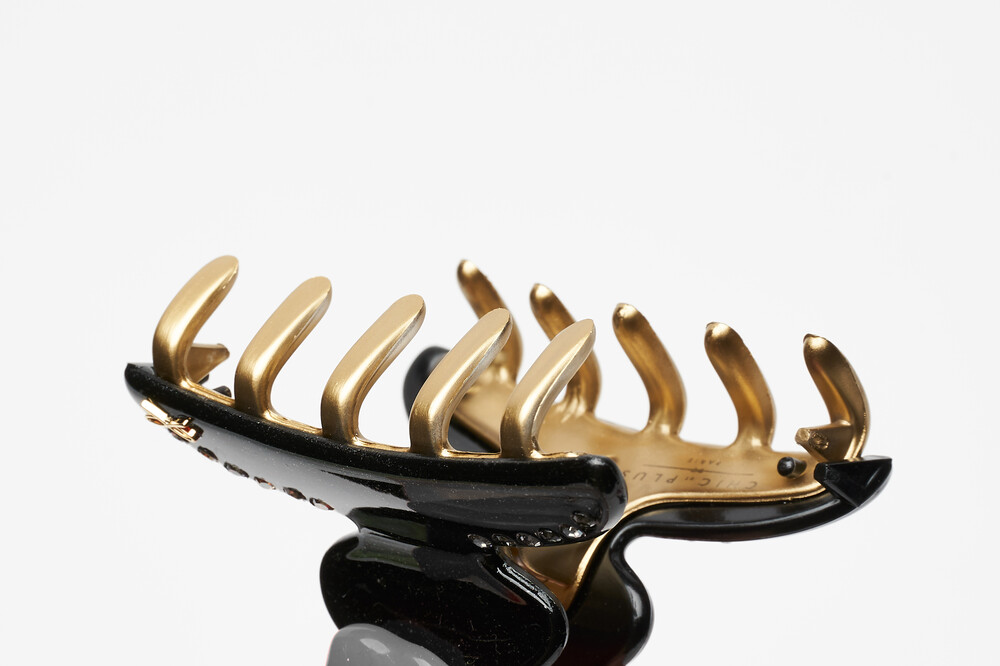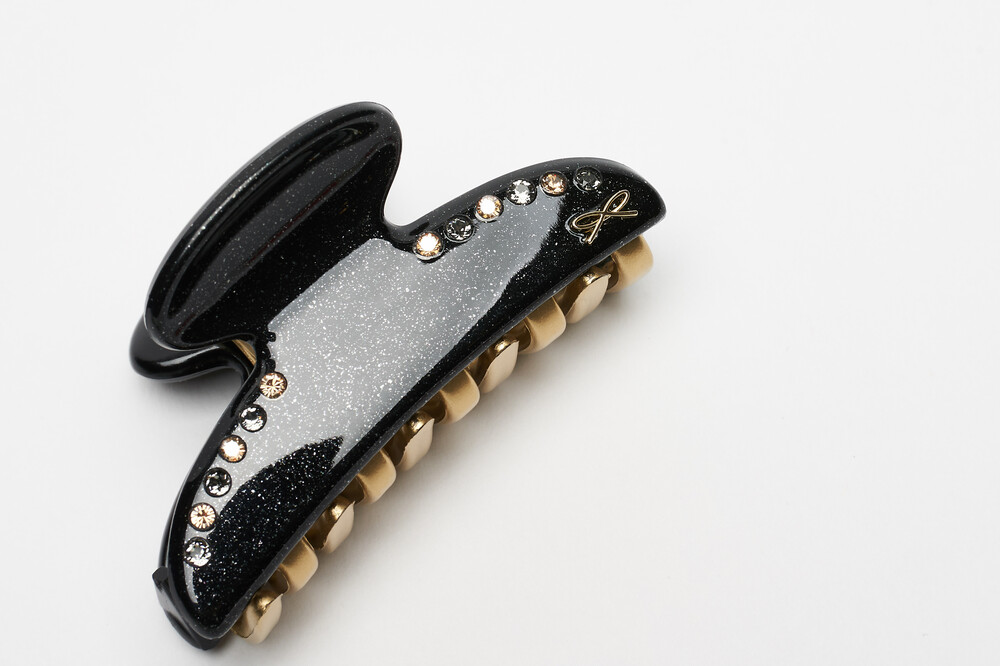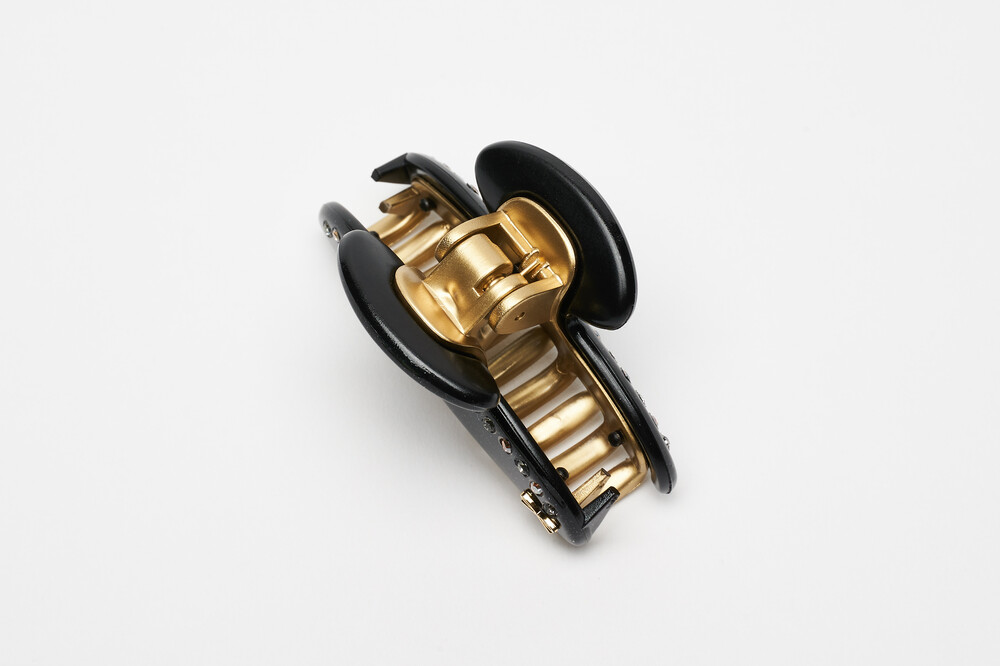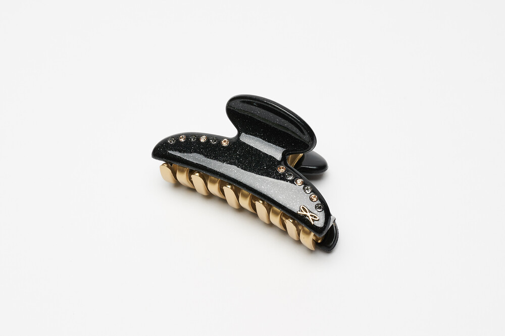 우아한 블랙 컬러에 크리스탈 라인스톤이 촘촘히 세팅된 집게핀입니다.