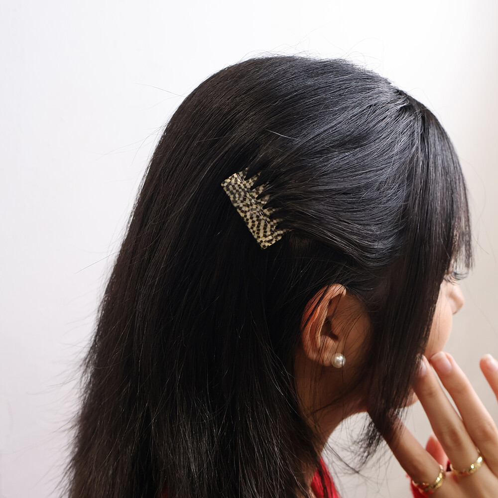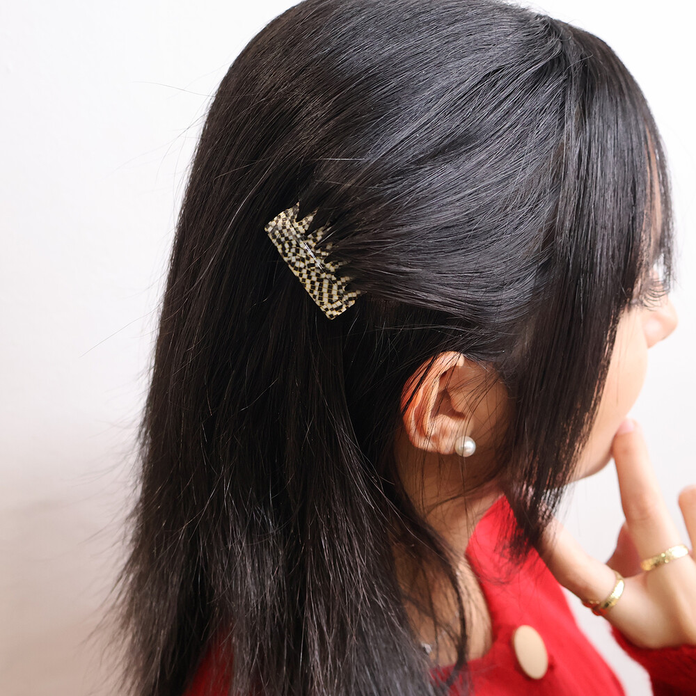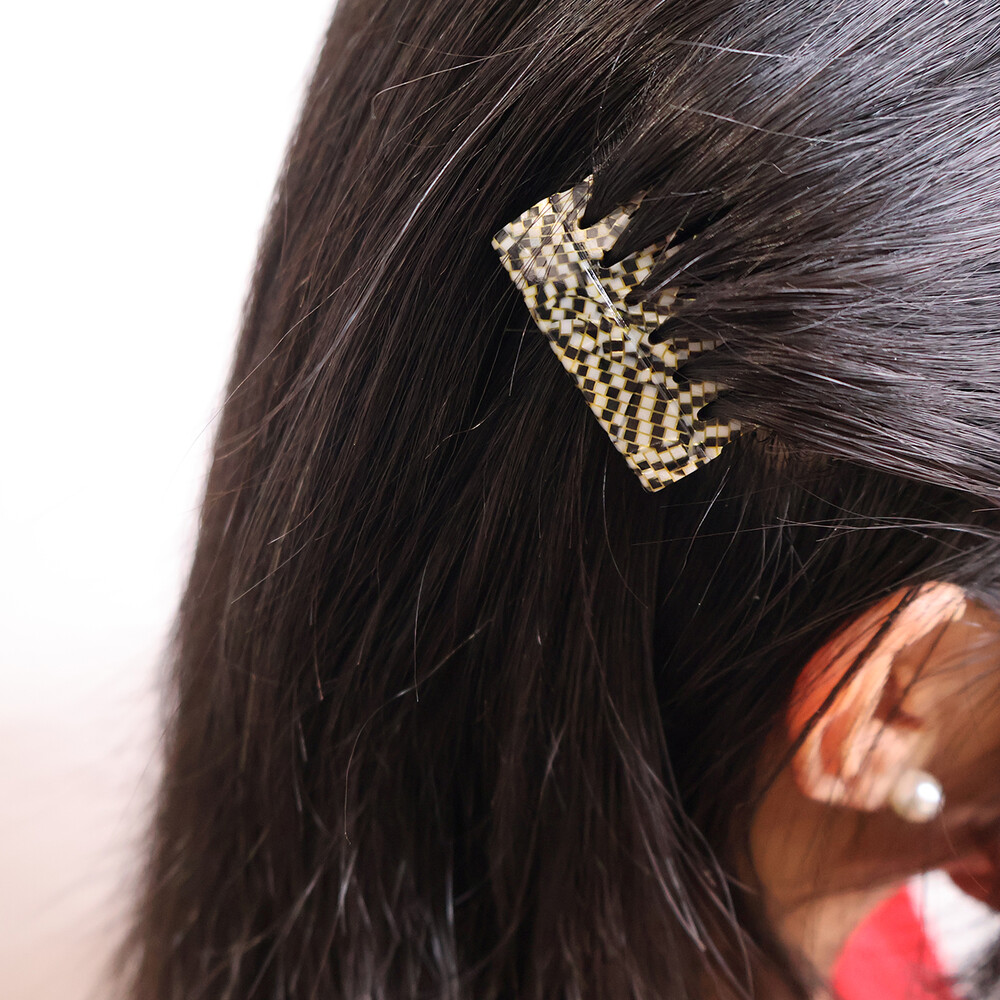 독특한 모자이크 패턴의 빗핀입니다.