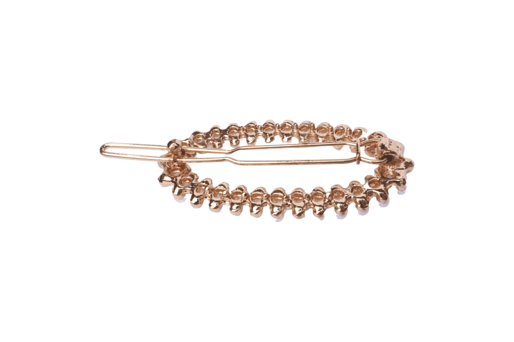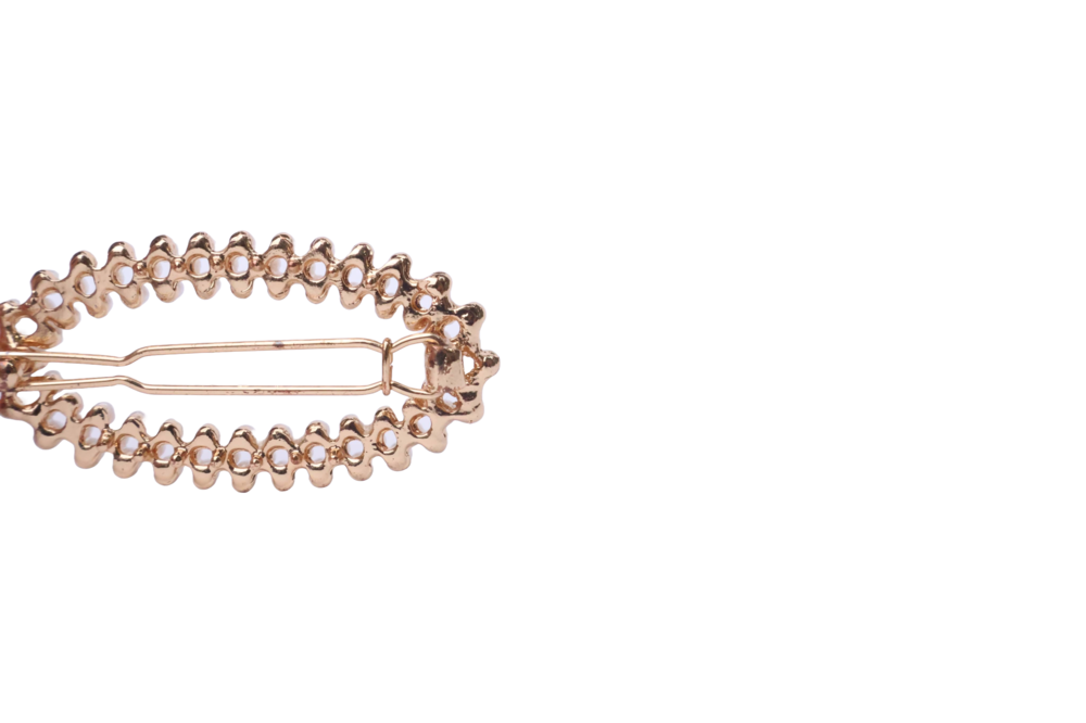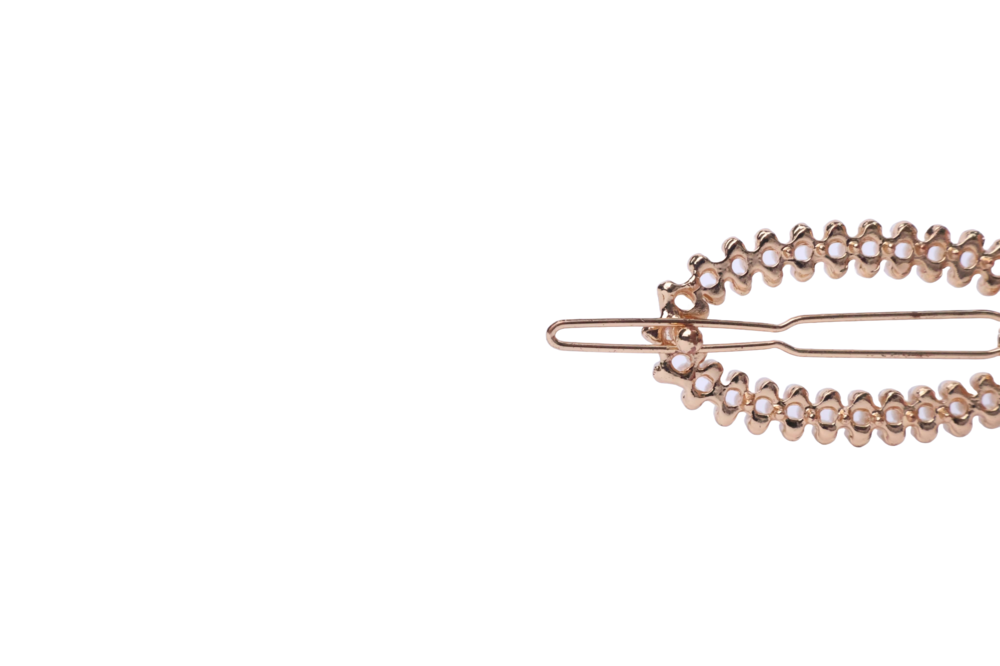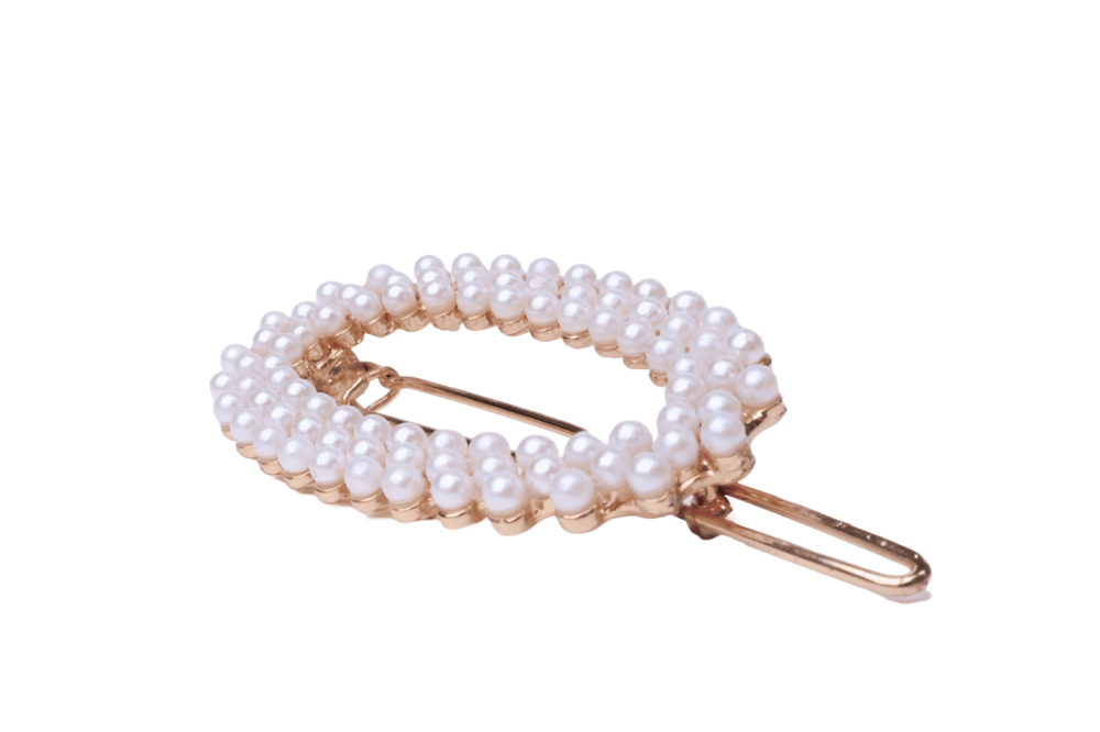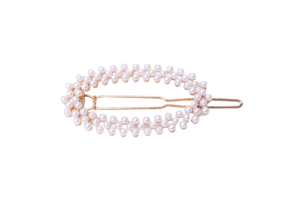 동그란 써클 쉐입 안에 진주가 촘촘히 박힌 우아한 디자인의 헤어클립입니다.