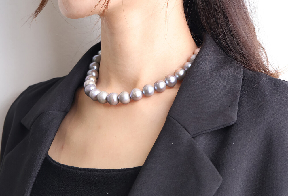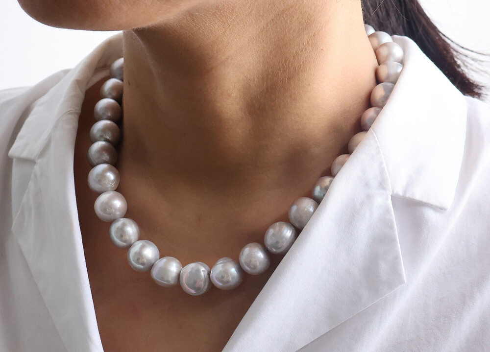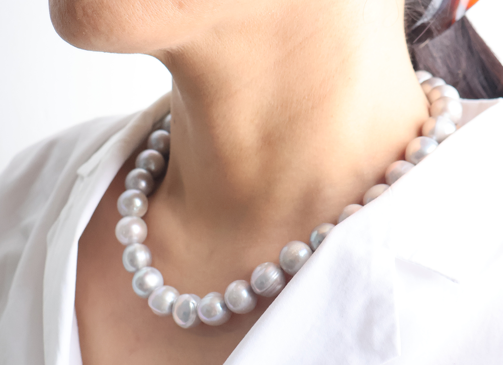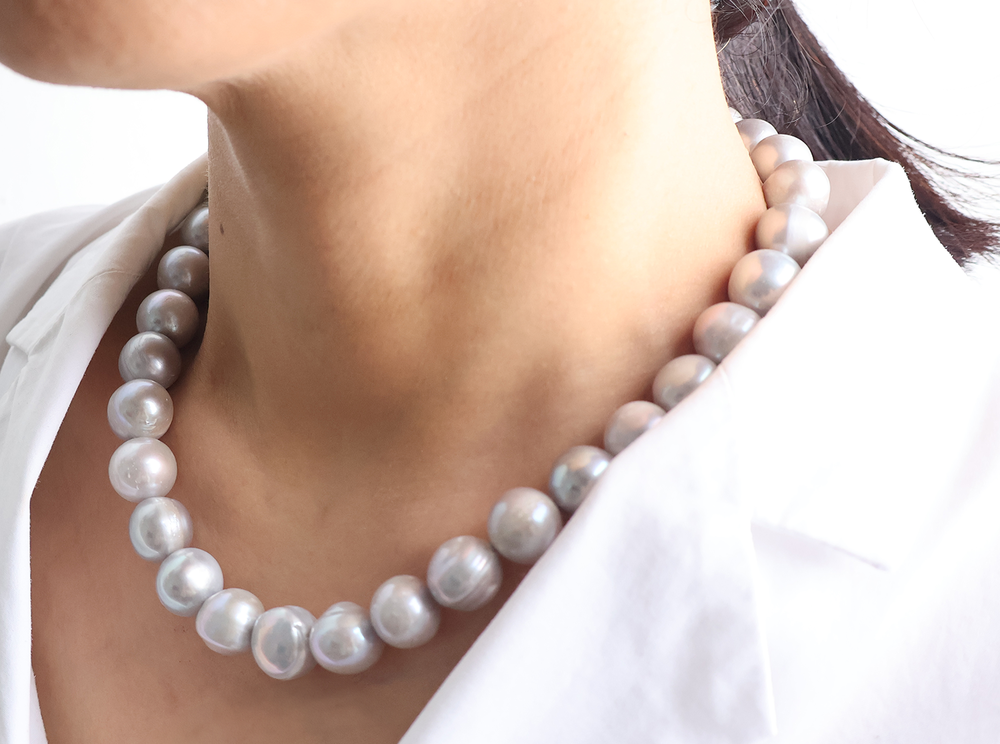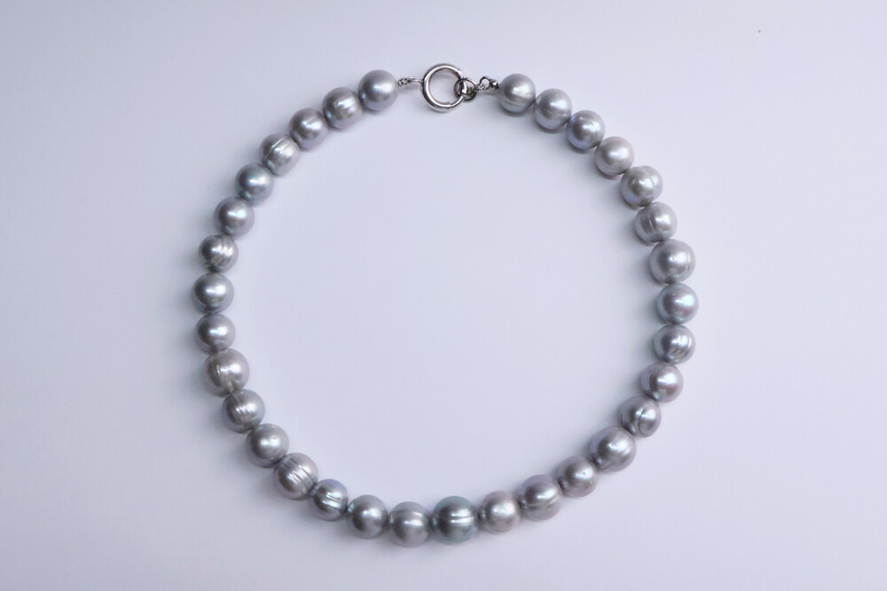 컷팅이나 가공을 하지 않은 천연 밍진주로 제작한 목걸이입니다.