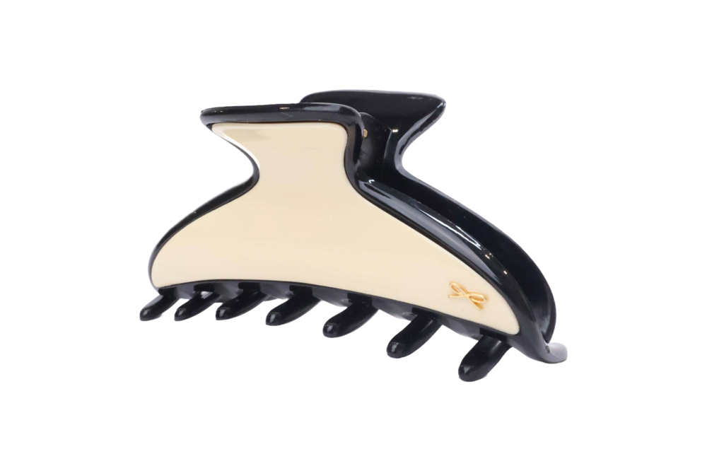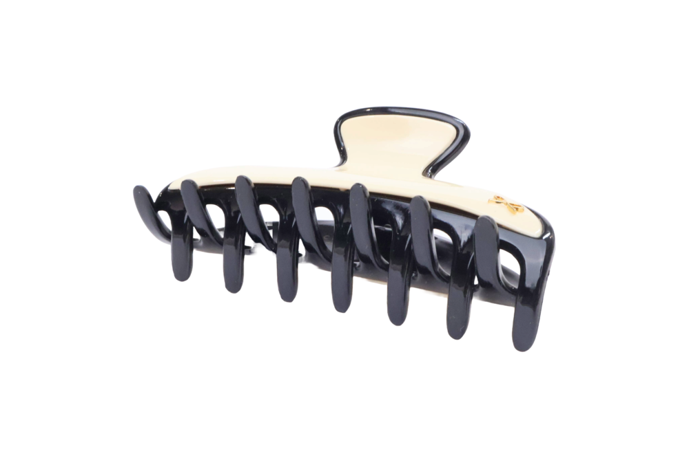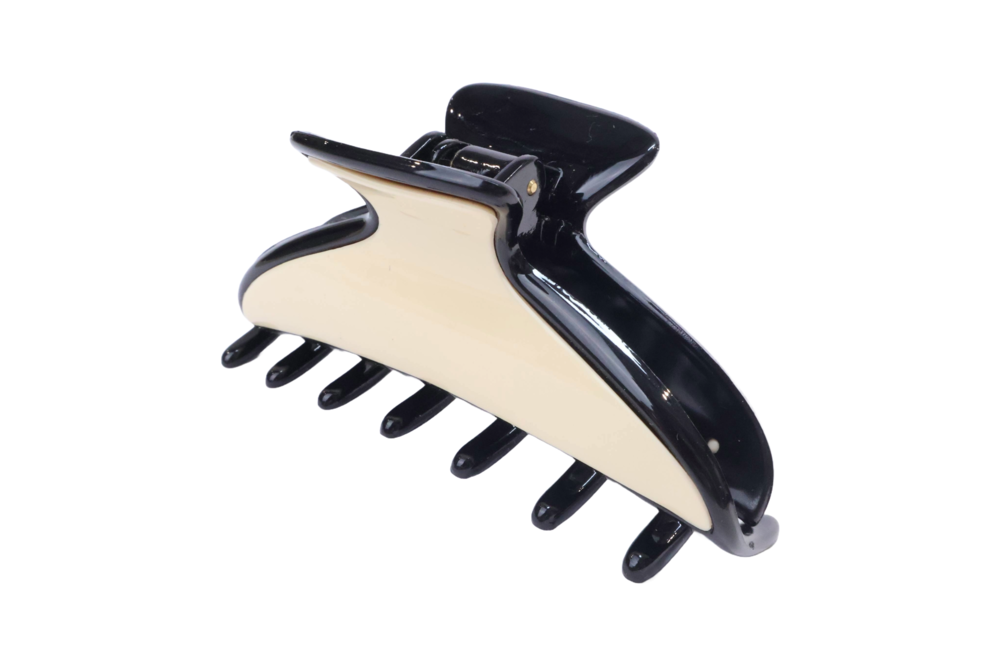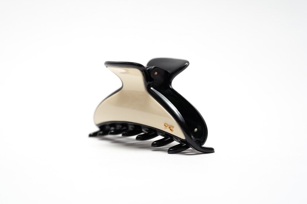 블랙 오프화이트 집게핀은 깔끔하면서도 세련된 대비가 돋보이는 모던한 디자인의 헤어 집게핀입니다.