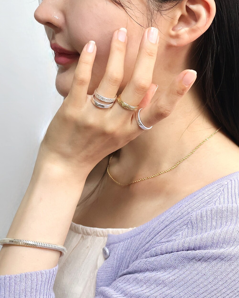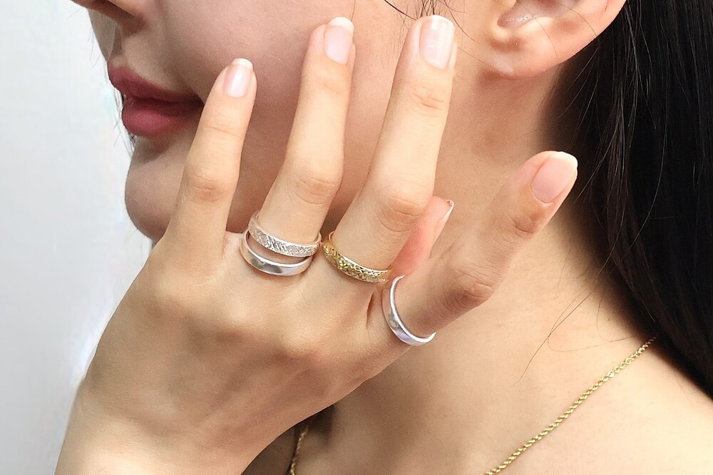 다이아 커팅 기술이 적용된 자사 실버 반지와 팔찌도 판매되고 있습니다.
