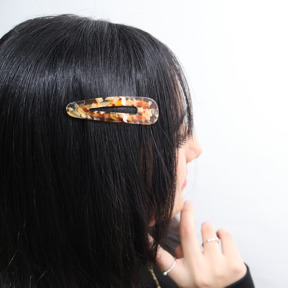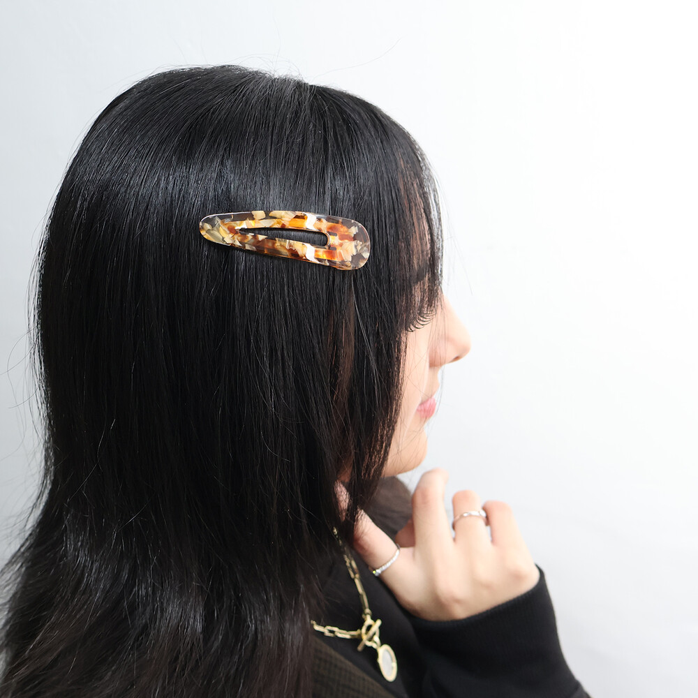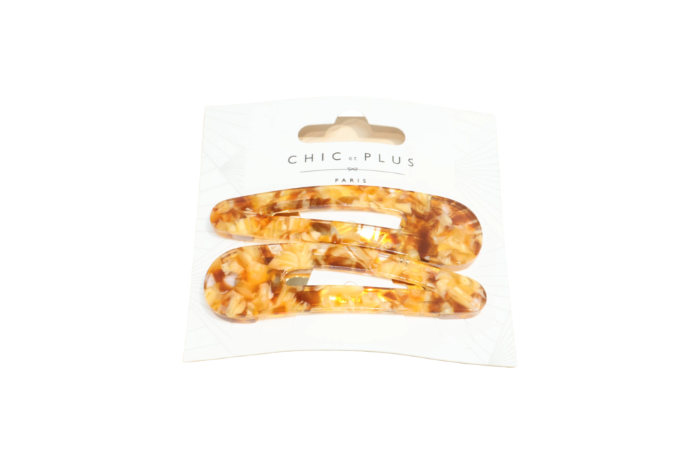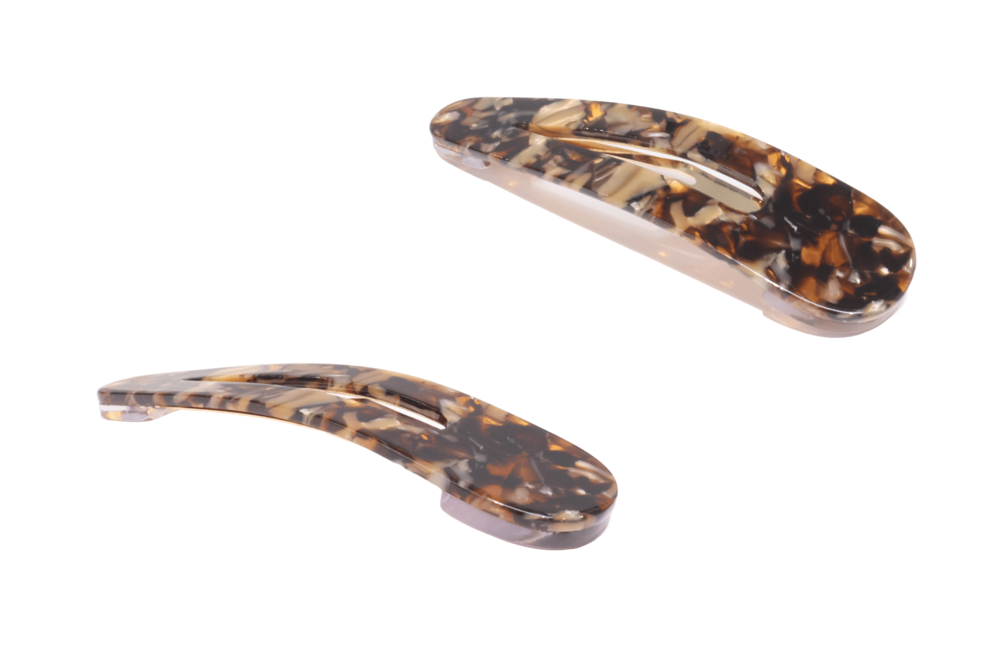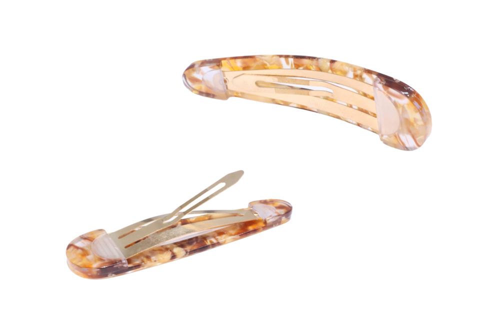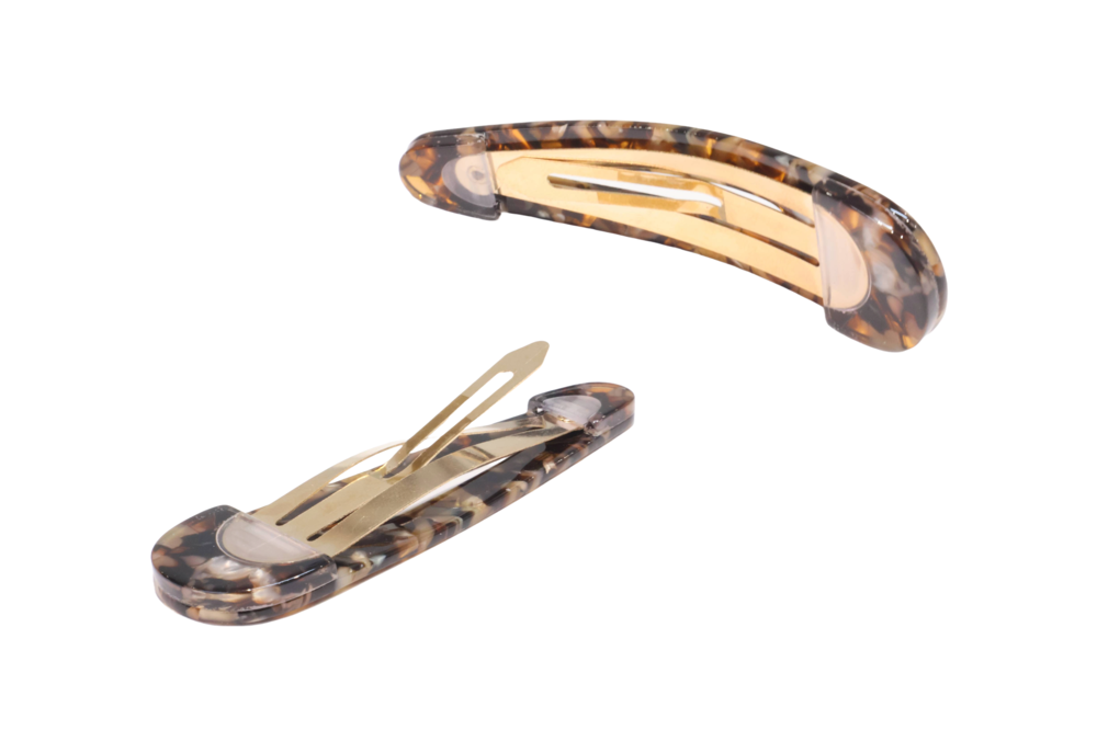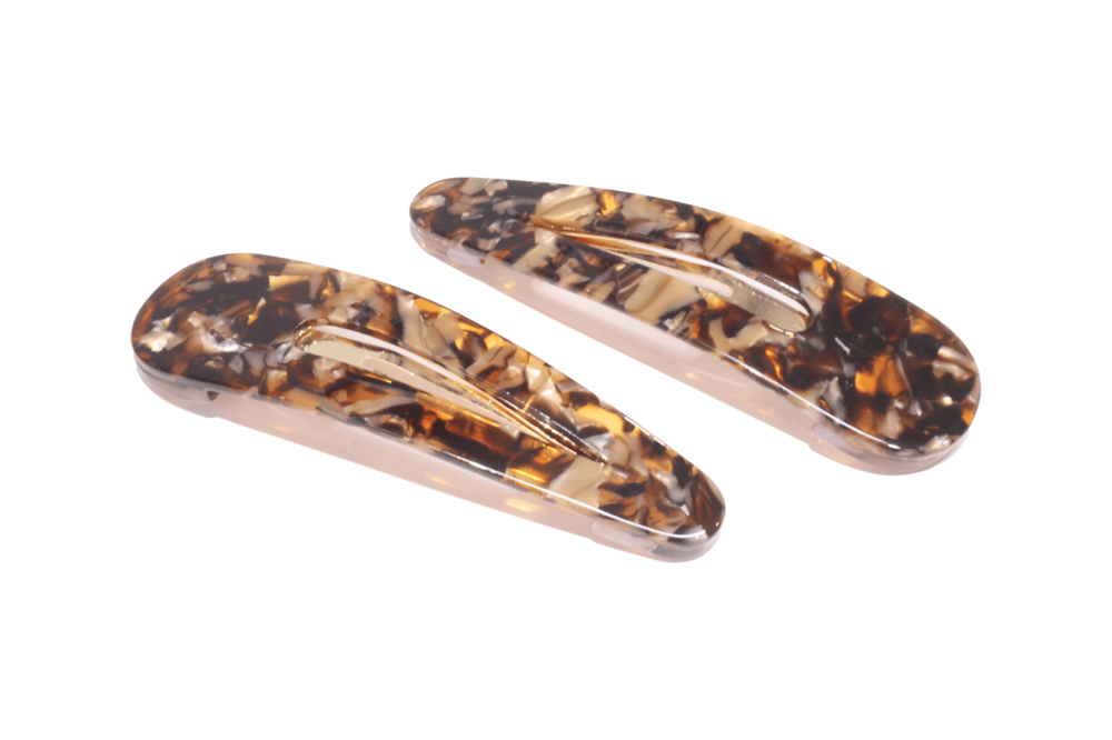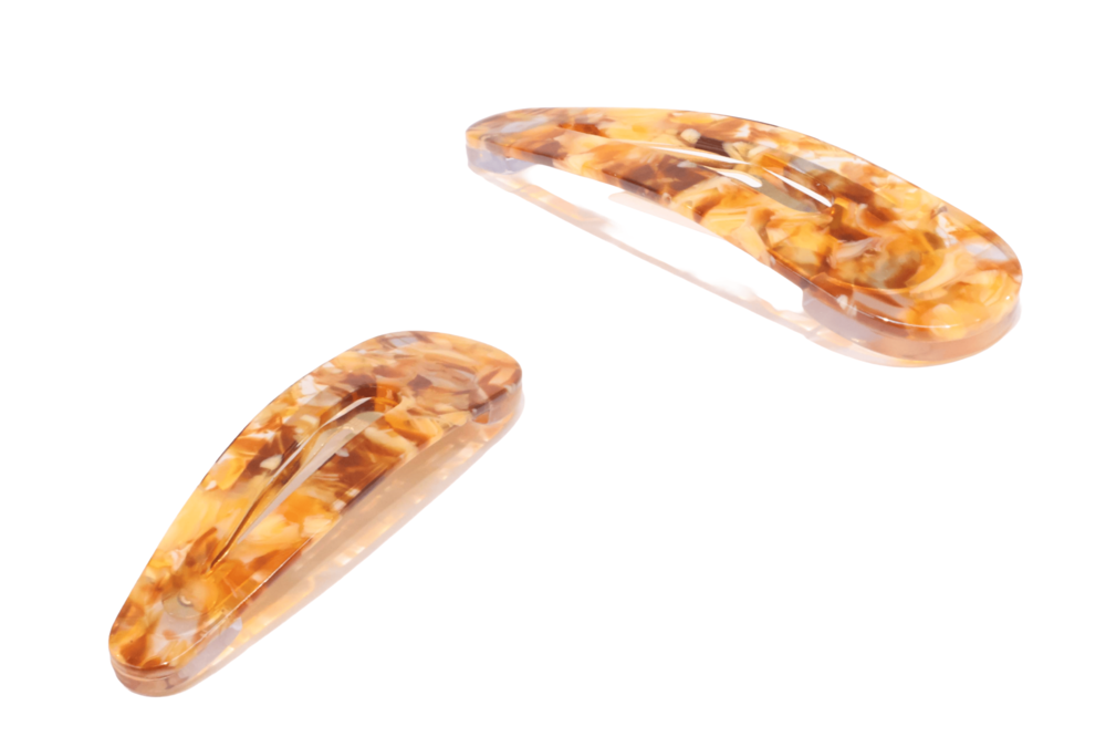 고운 마블링이 돋보이는 갈색 또는 오렌지빛 똑딱이핀입니다.