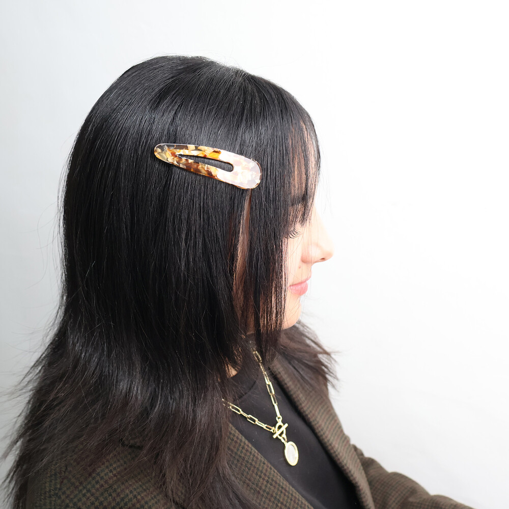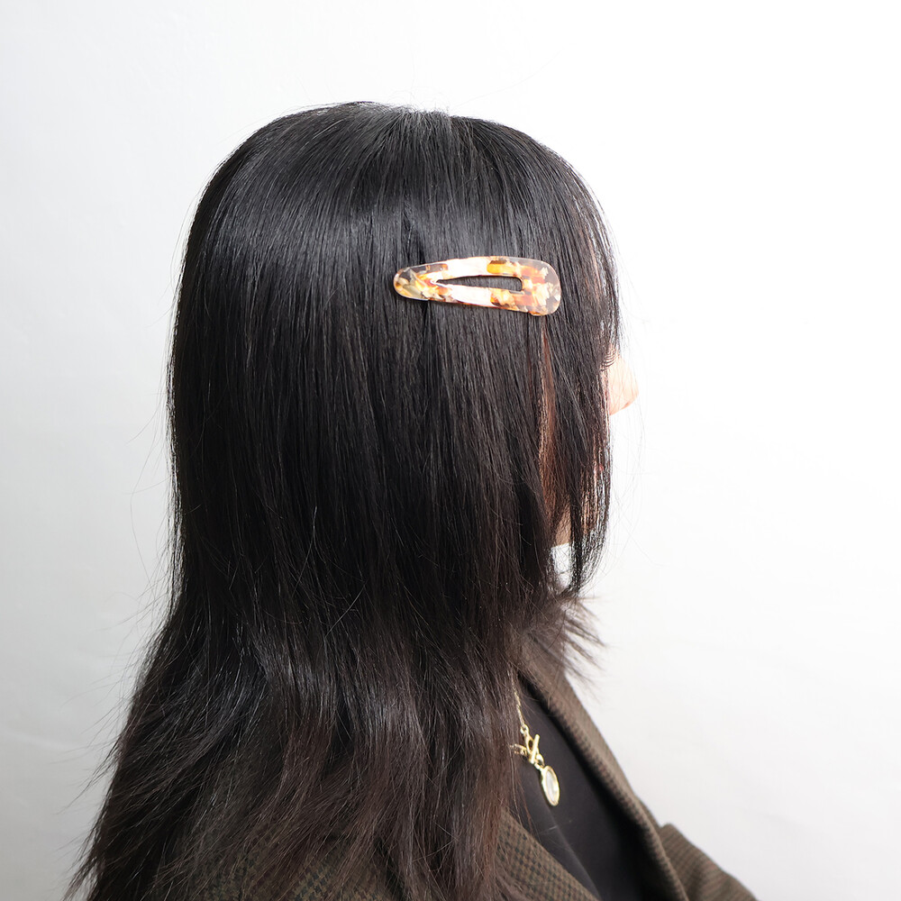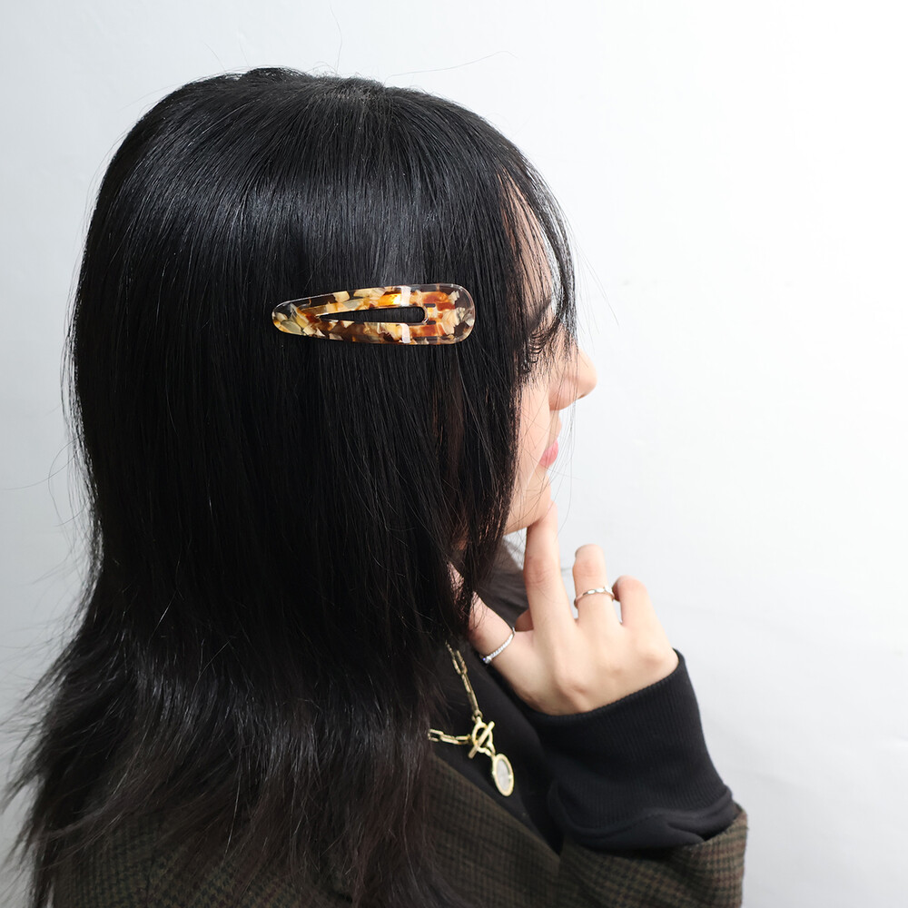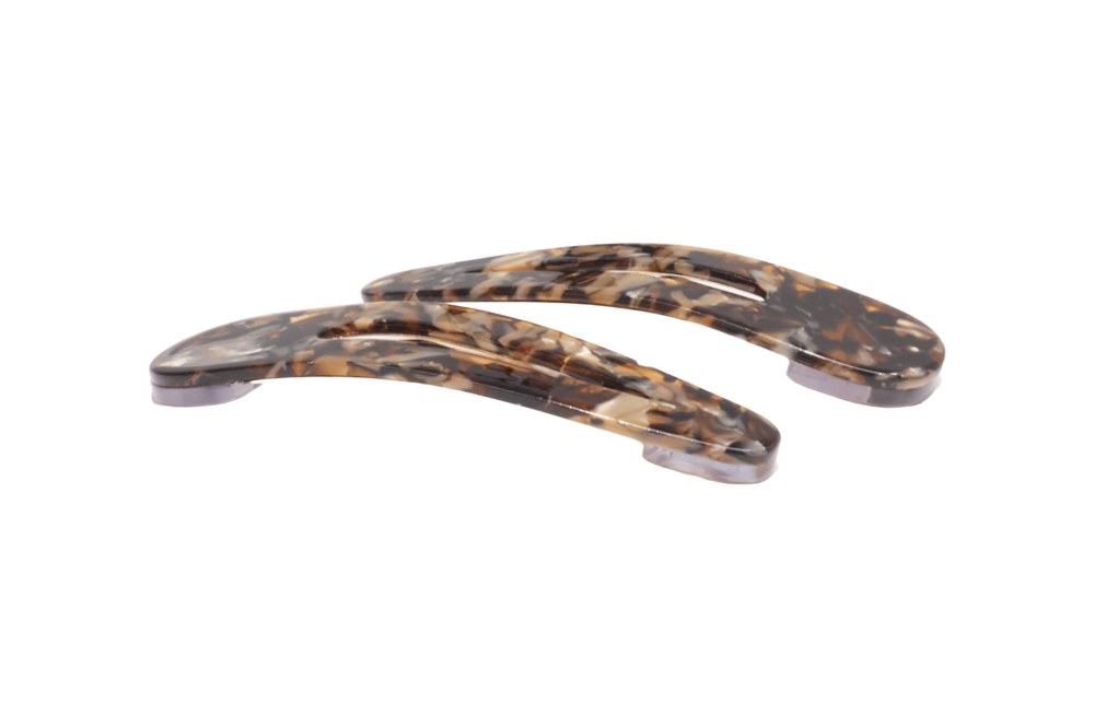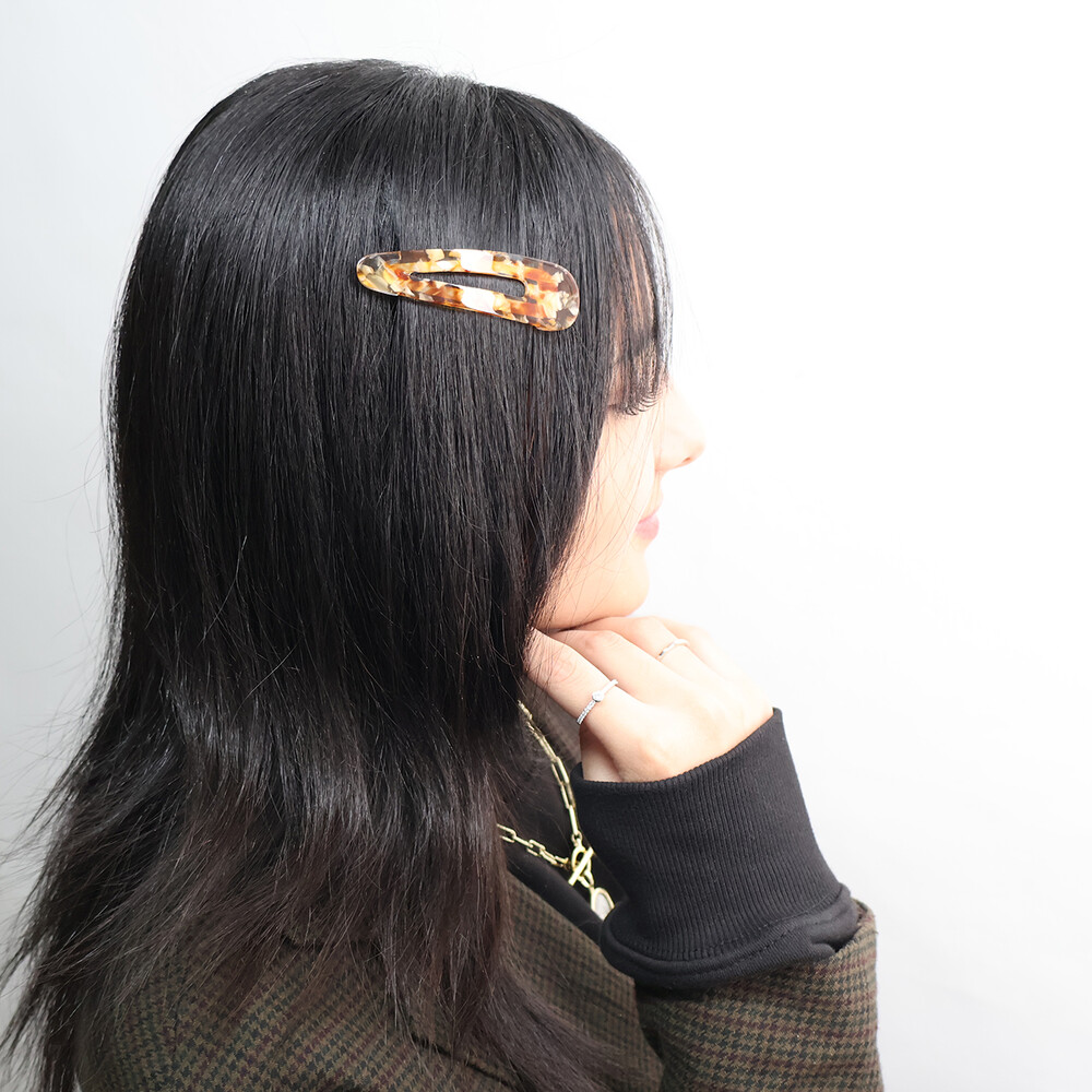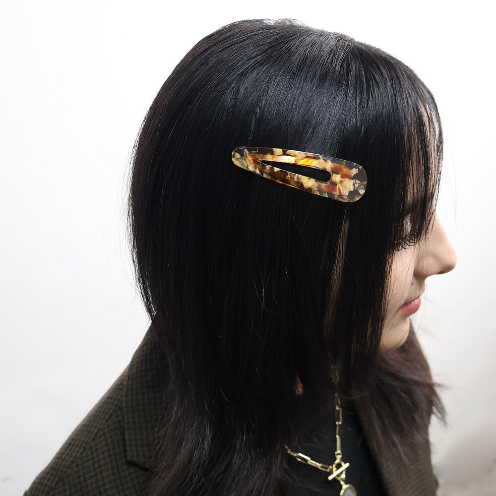 고운 마블링이 돋보이는 갈색 또는 오렌지빛 똑딱이핀입니다.