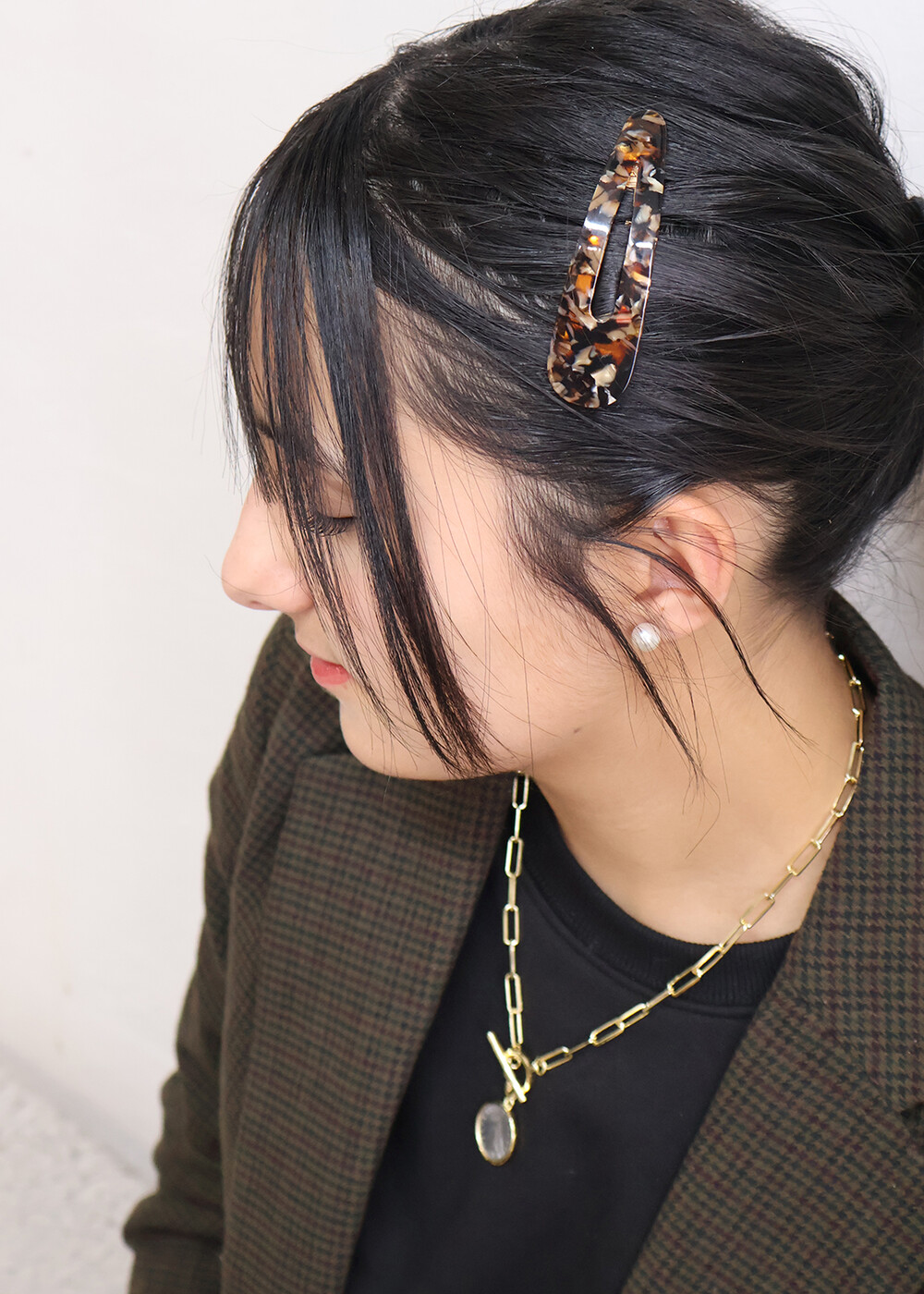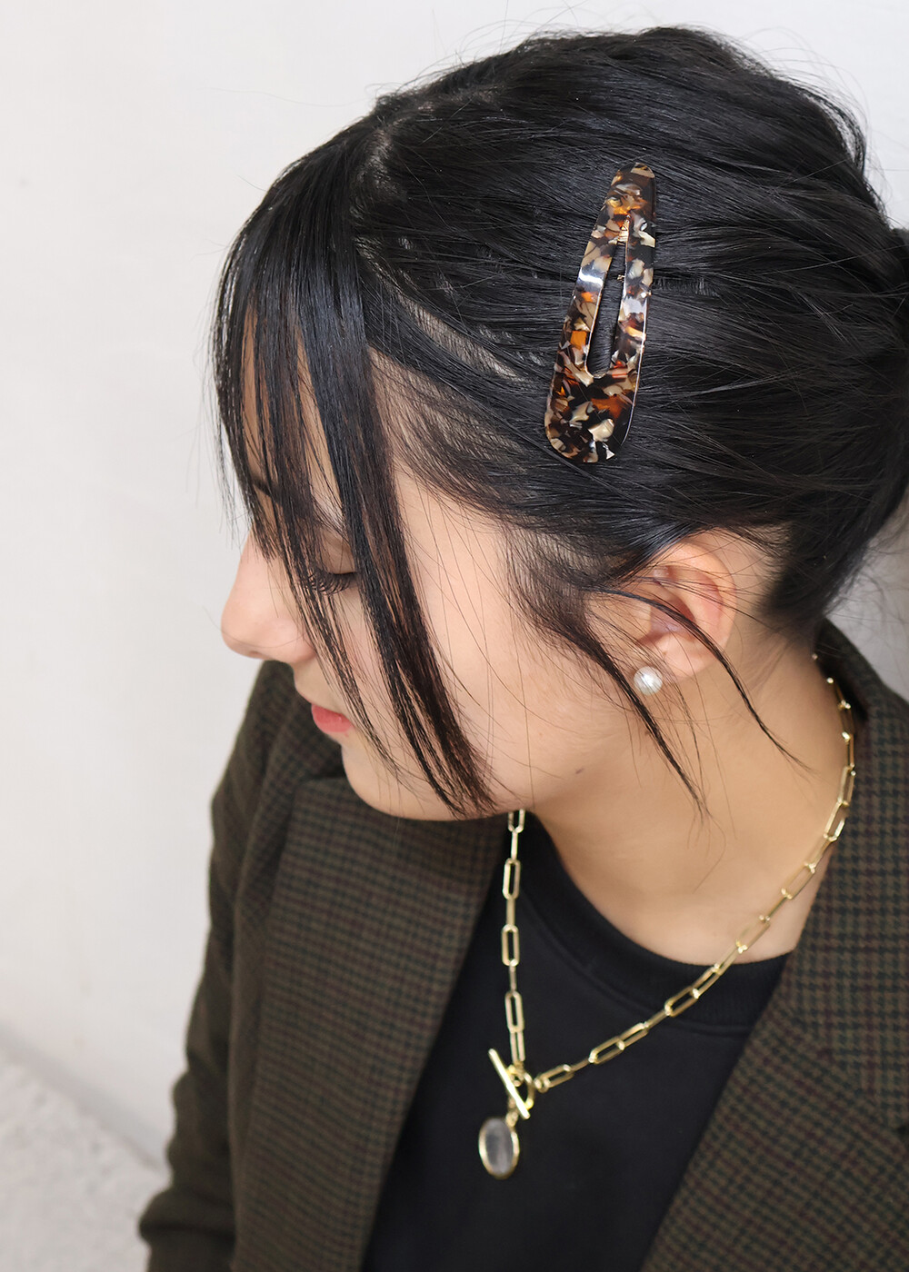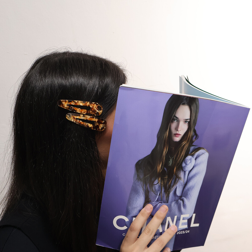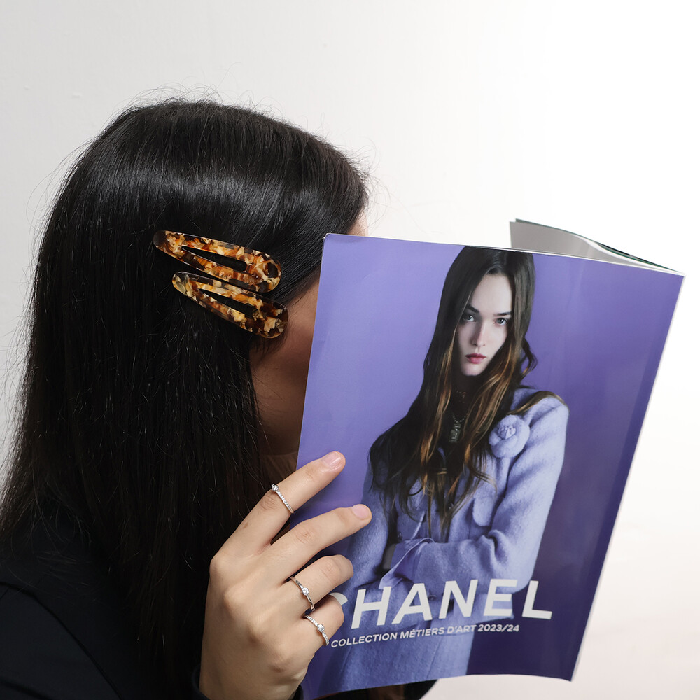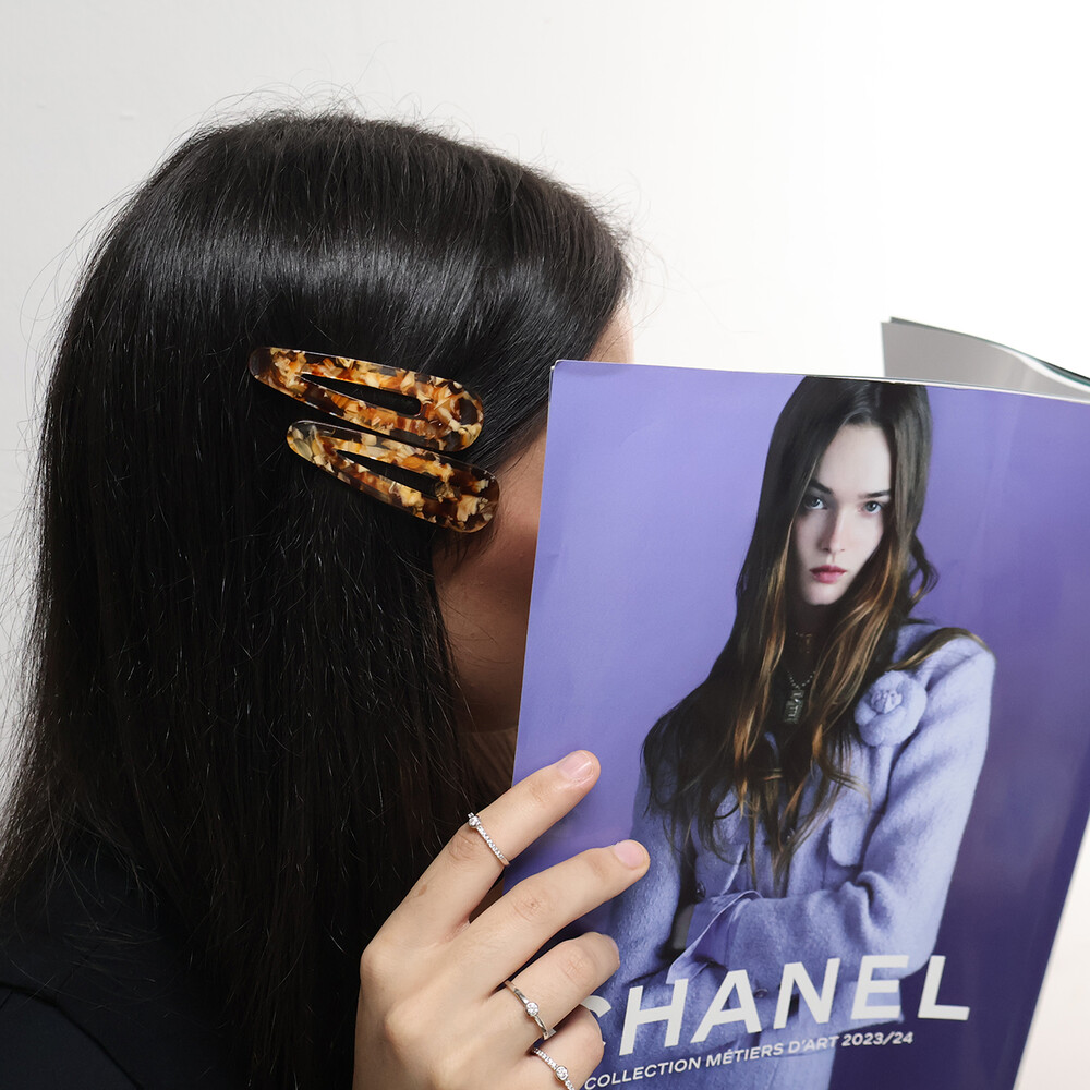 고운 마블링이 돋보이는 갈색 또는 오렌지빛 똑딱이핀입니다.