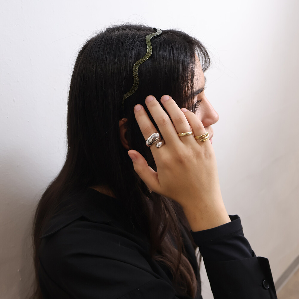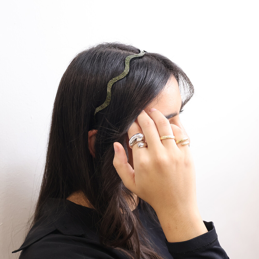 부드러운 곡선이 흐르는 웨이브 디자인의 헤어밴드입니다.