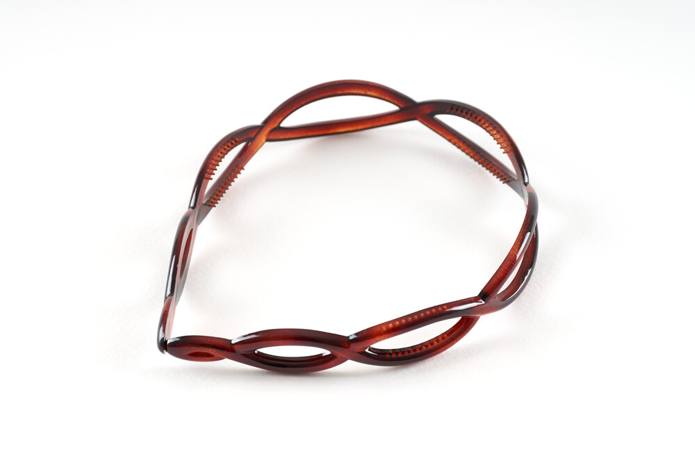 트위스트 디자인이 돋보이는 셀룰로오스 아세테이트 헤어밴드입니다.
