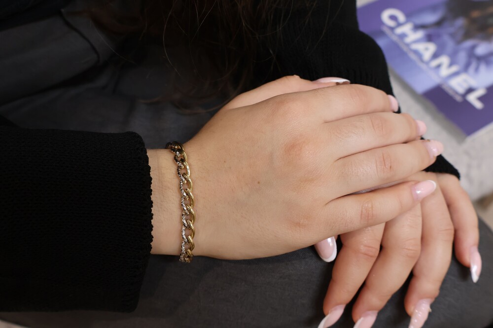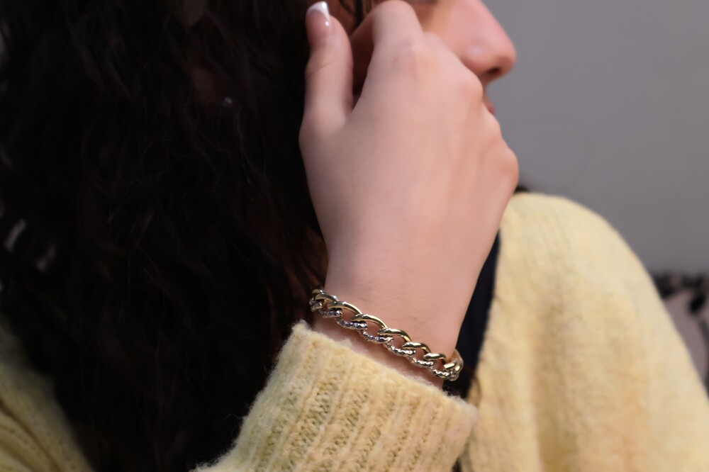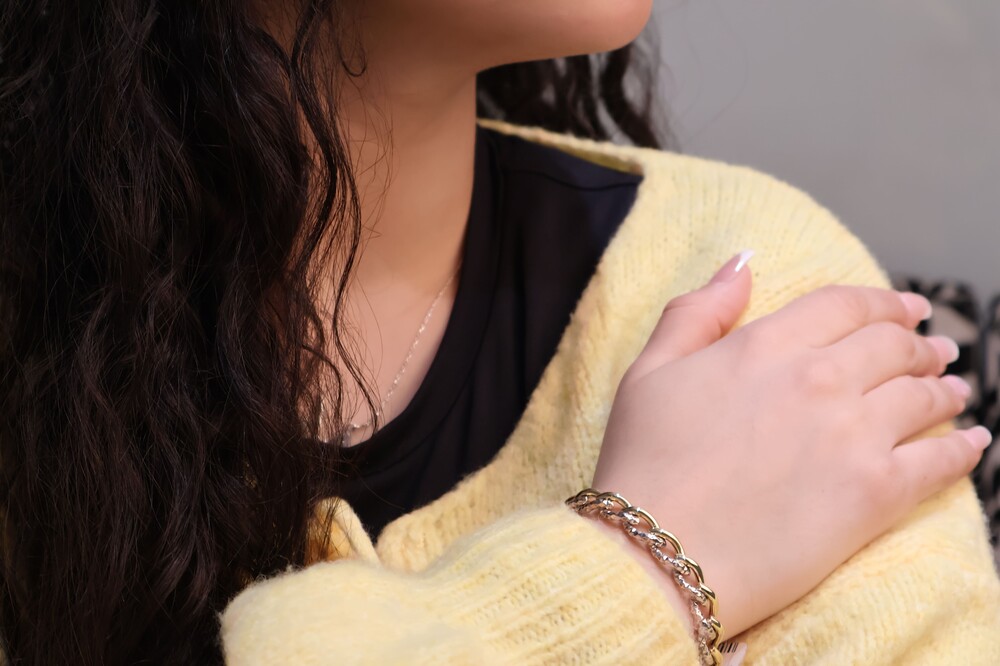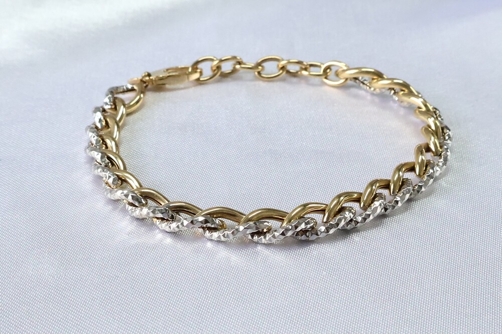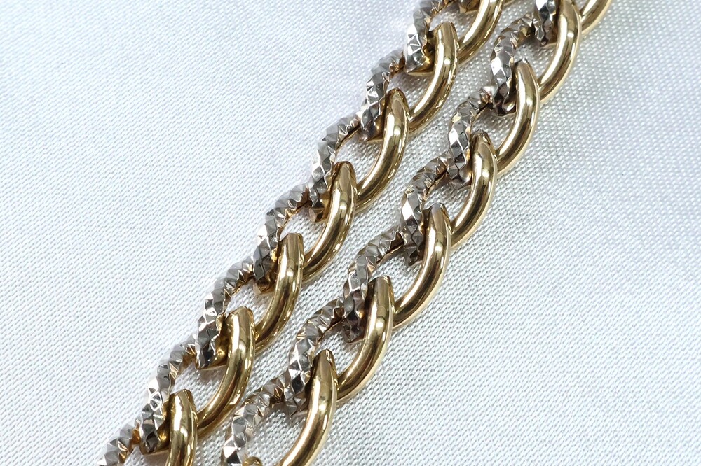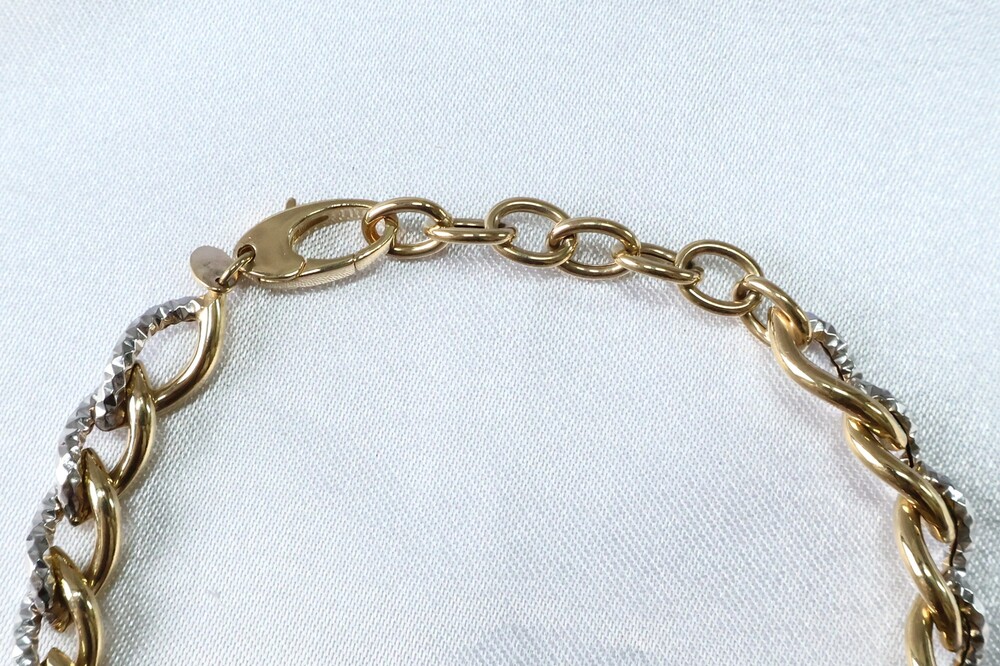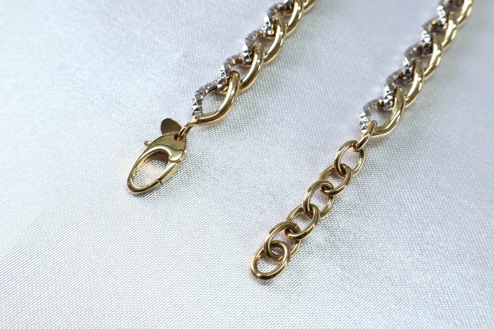 이탈리아에서 제작된 14K 화이트골드와 옐로우골드의 바이컬러 체인 팔찌는 고급스러움이 돋보이는 제품입니다.
