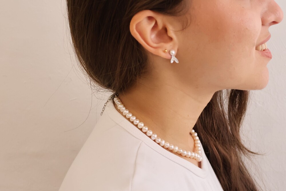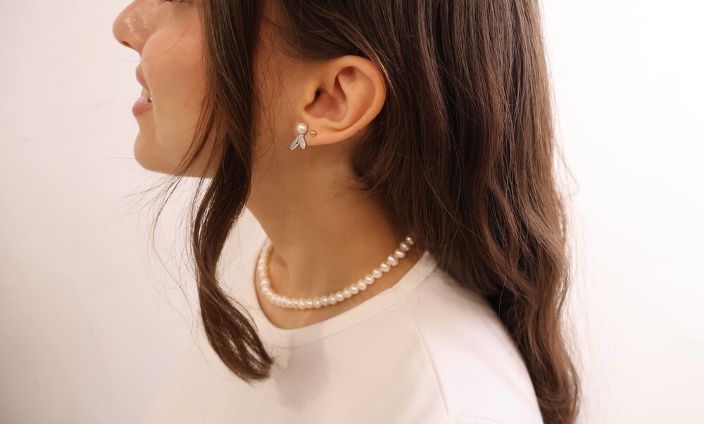 진주와 리프 디자인이 조화된 이어링으로, 섬세한 디테일 속에 자연스러운 우아함이 느껴지는 아이템 입니다.