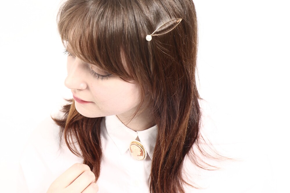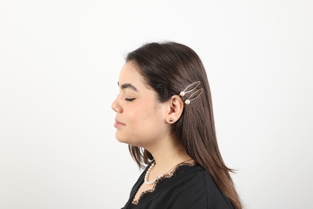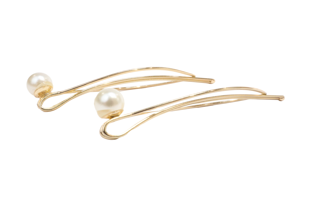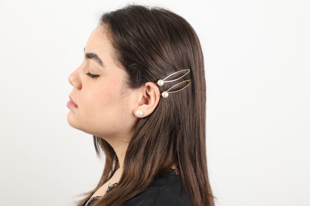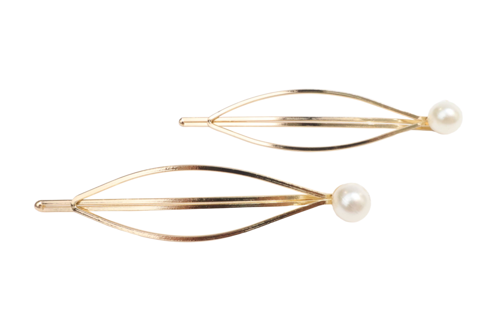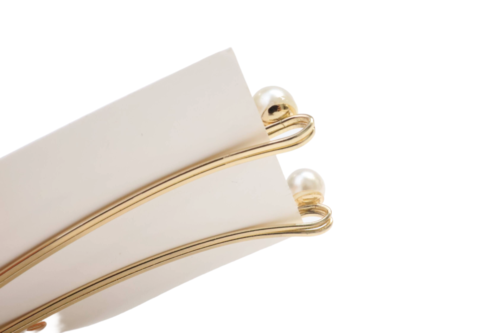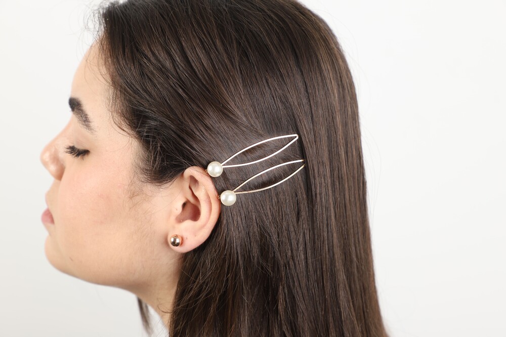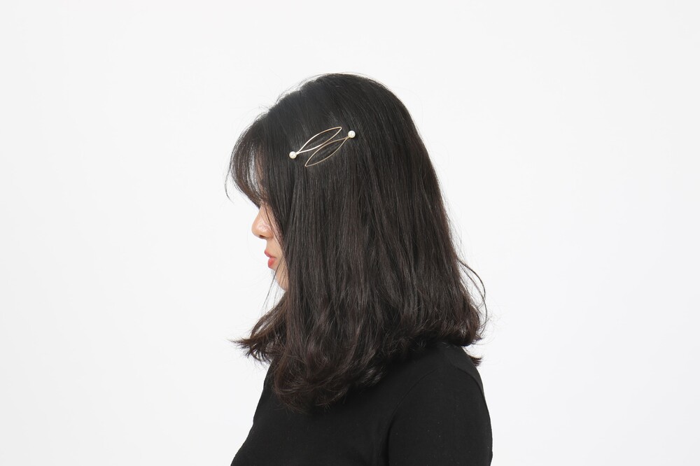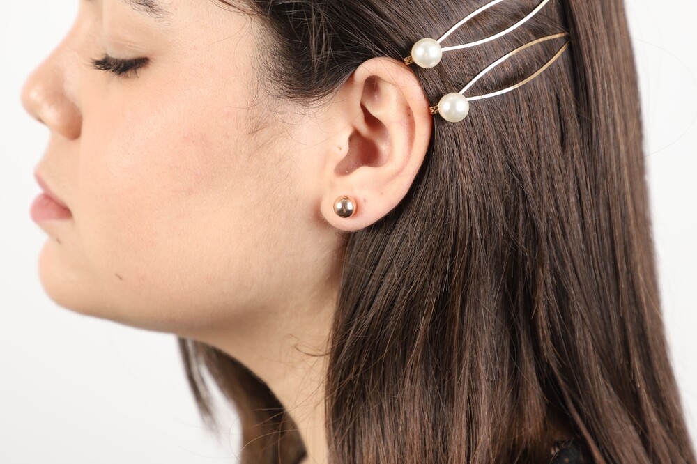 진주와 메탈이 조화를 이루는 고급스러운 헤어클립핀입니다.