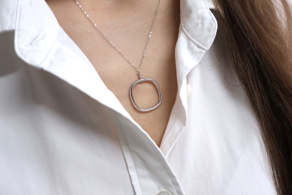 미니멀한 사각 쉐입이 매력적인 쿠션 디자인의 목걸이입니다.
