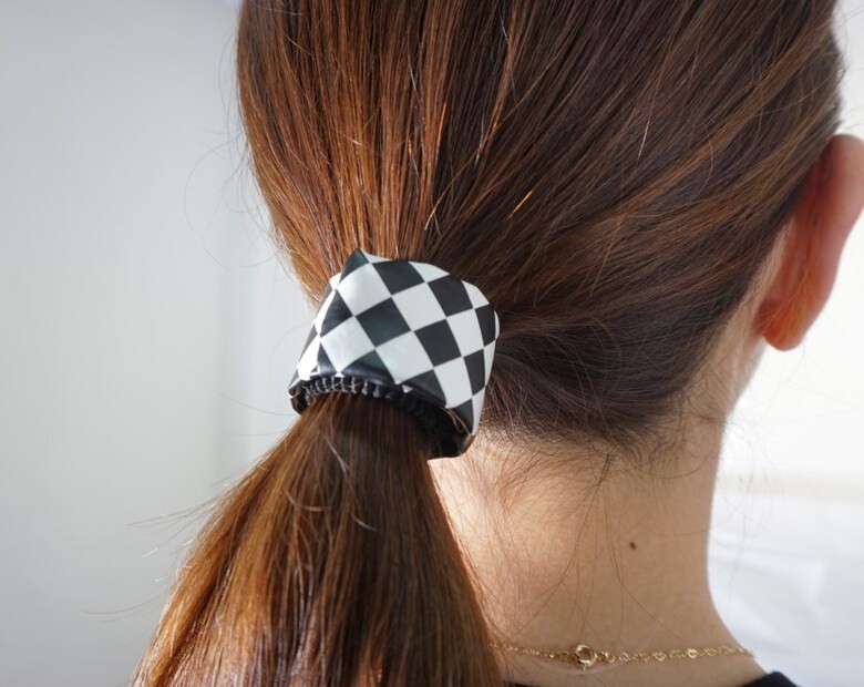블랙과 화이트가 조화로운 세련된 패턴 머리끈입니다.
