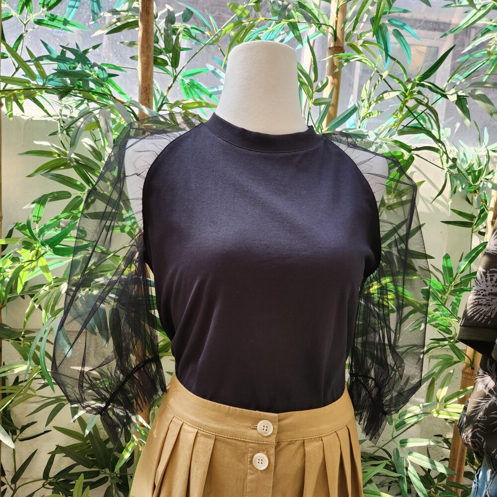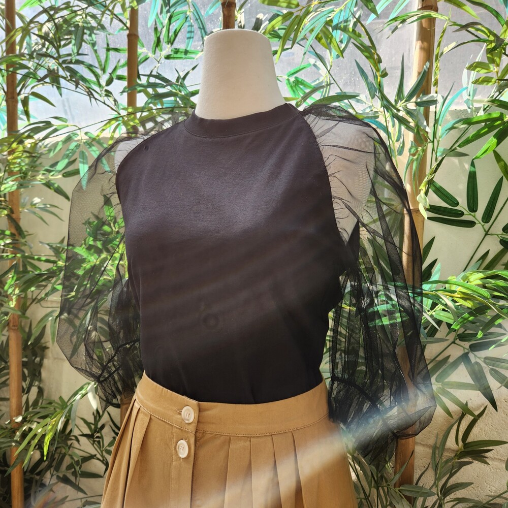 시스루 소재와 퍼프 실루엣의 소매가 포인트인 블라우스입니다.