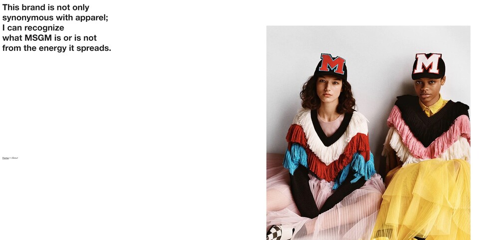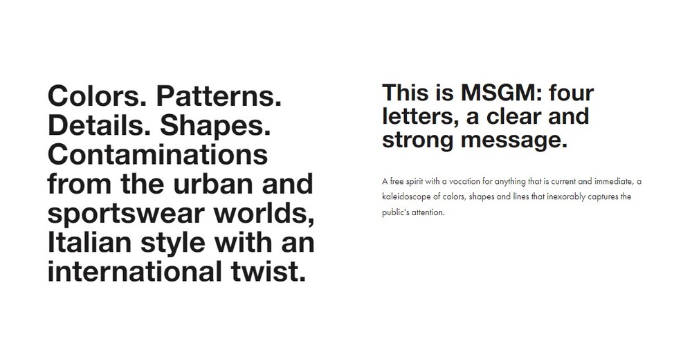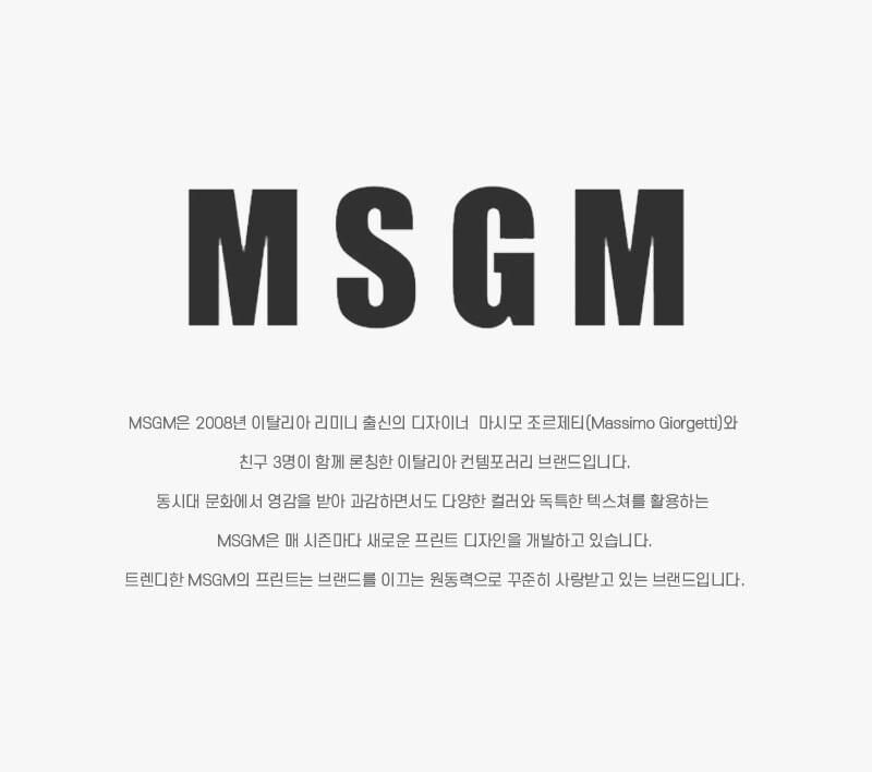 "레게레자 논 에 피상적인 이타(가벼운 것은 피상적인 것이 아닙니다).오늘날 MSGM 컬렉션은 전 세계 600개 이상의 멀티 브랜드 매장,