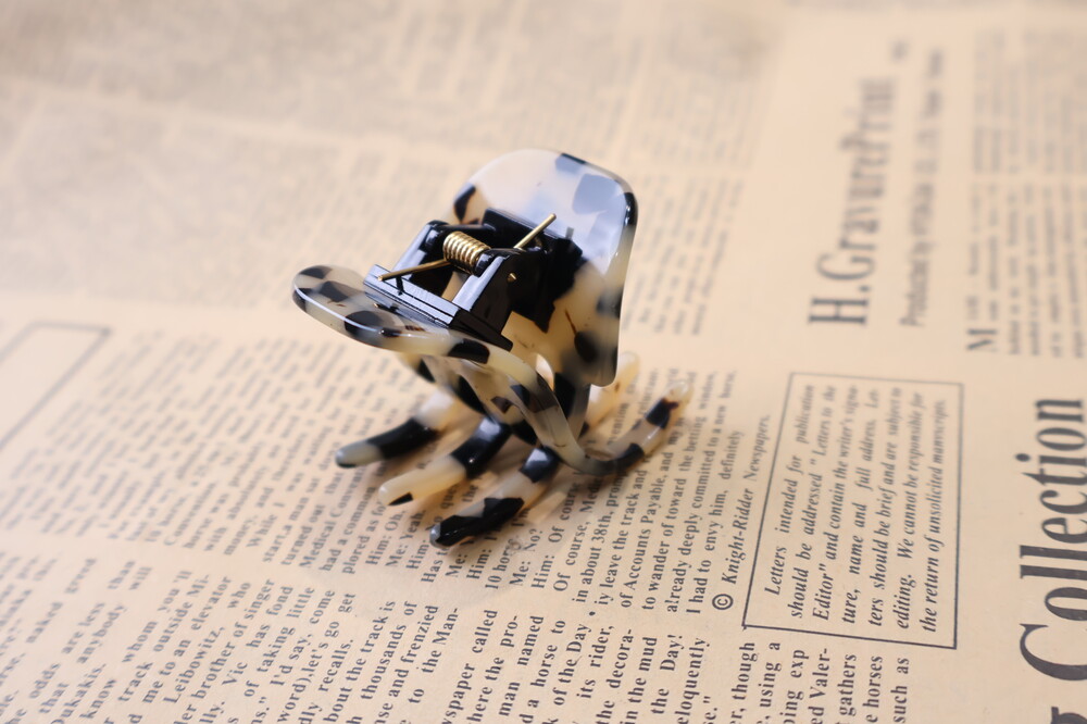 화이트 베이스에 도쿄쉘 호피무늬가 더해진 세련된 집게핀입니다.