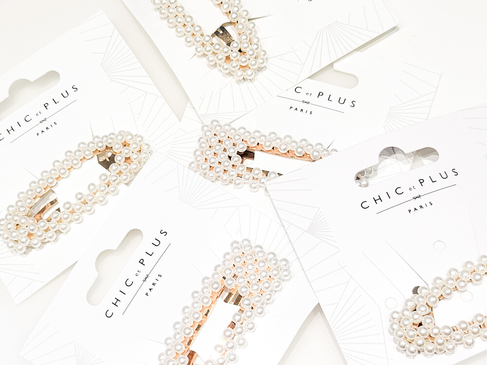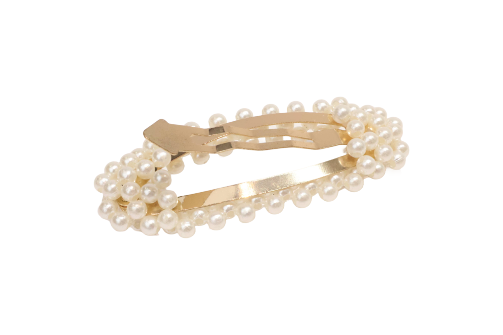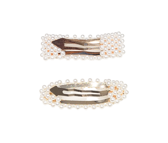 작은 진주알들이 촘촘히 박혀 있는 똑딱이핀 세트입니다.