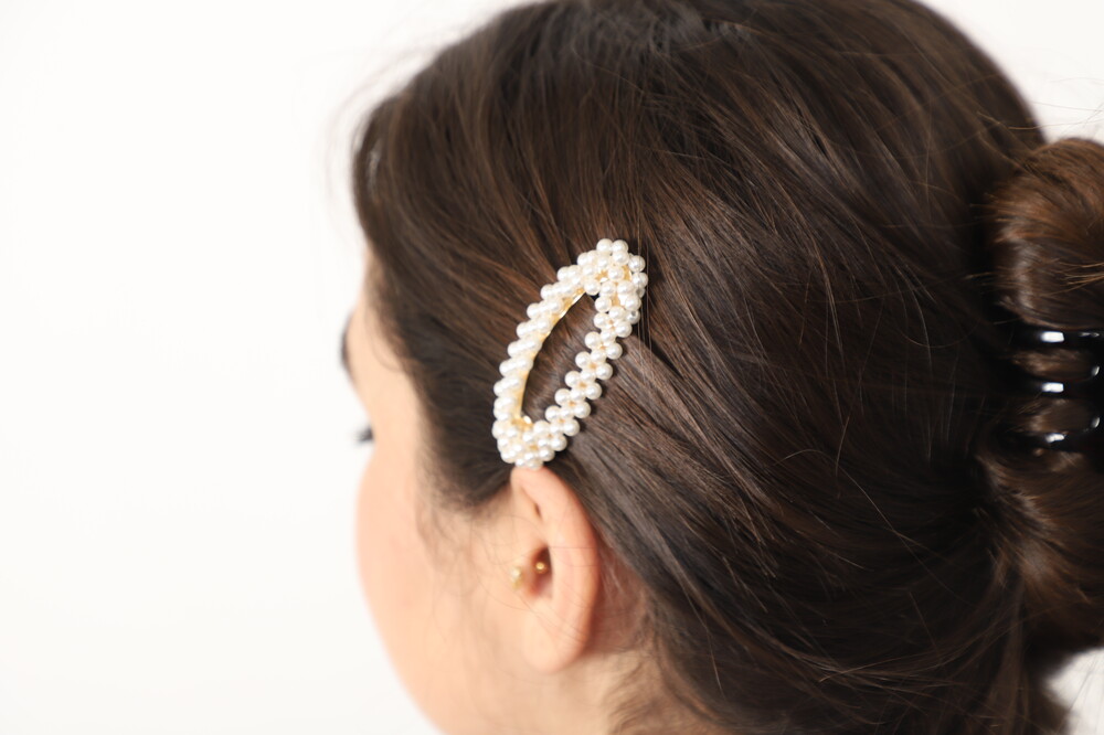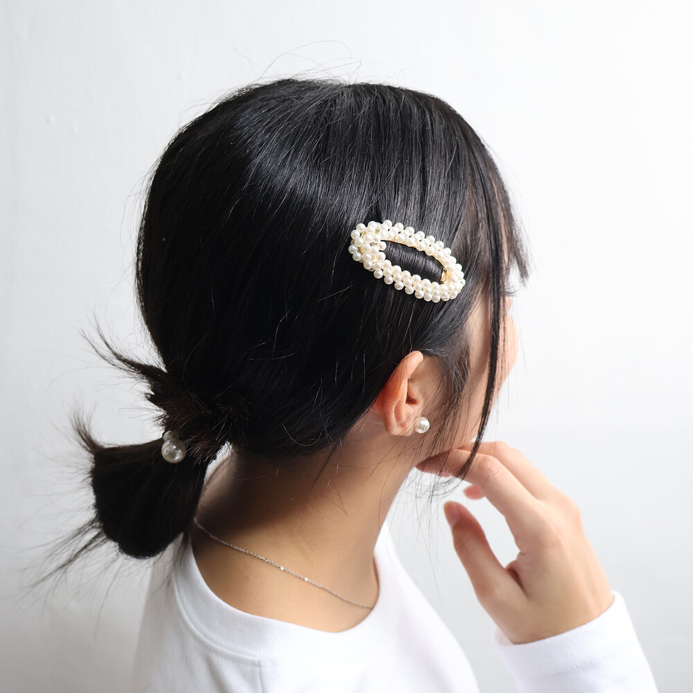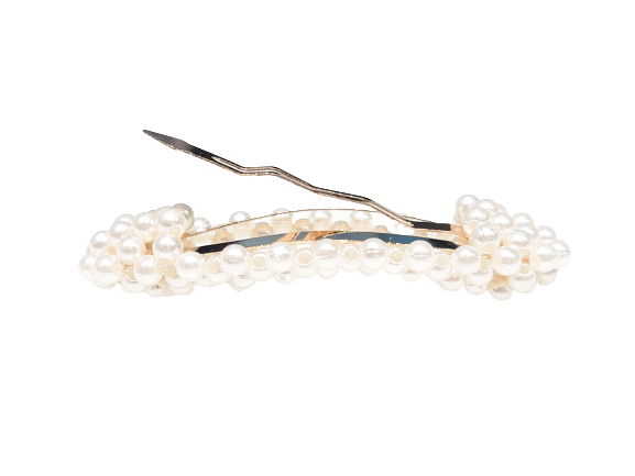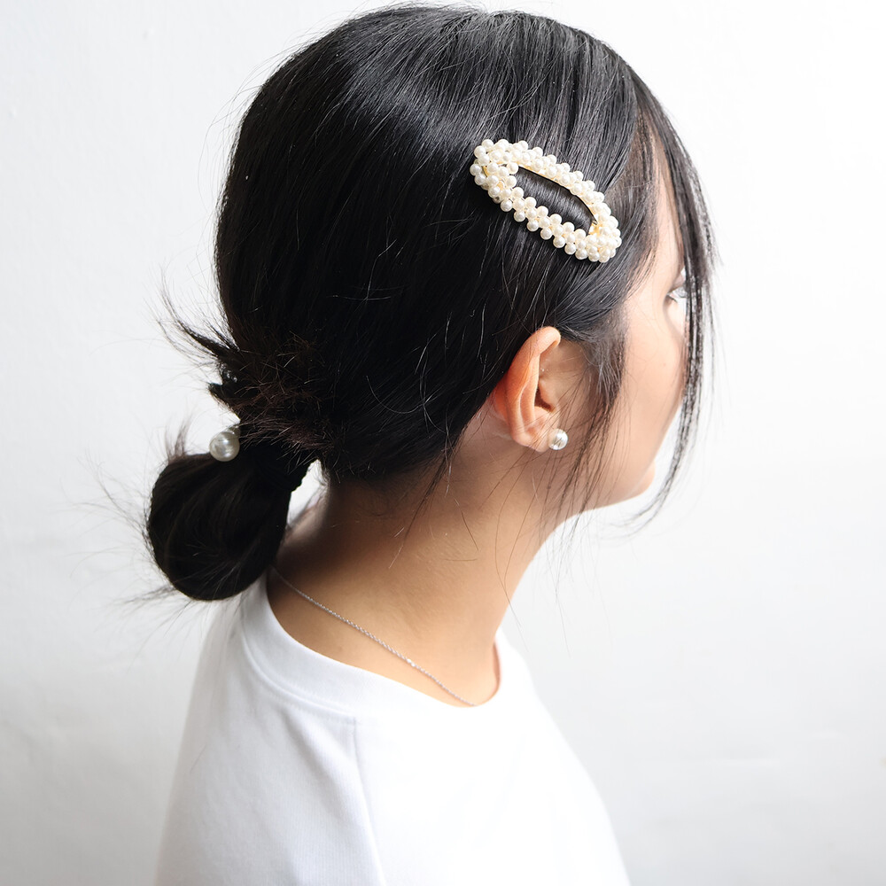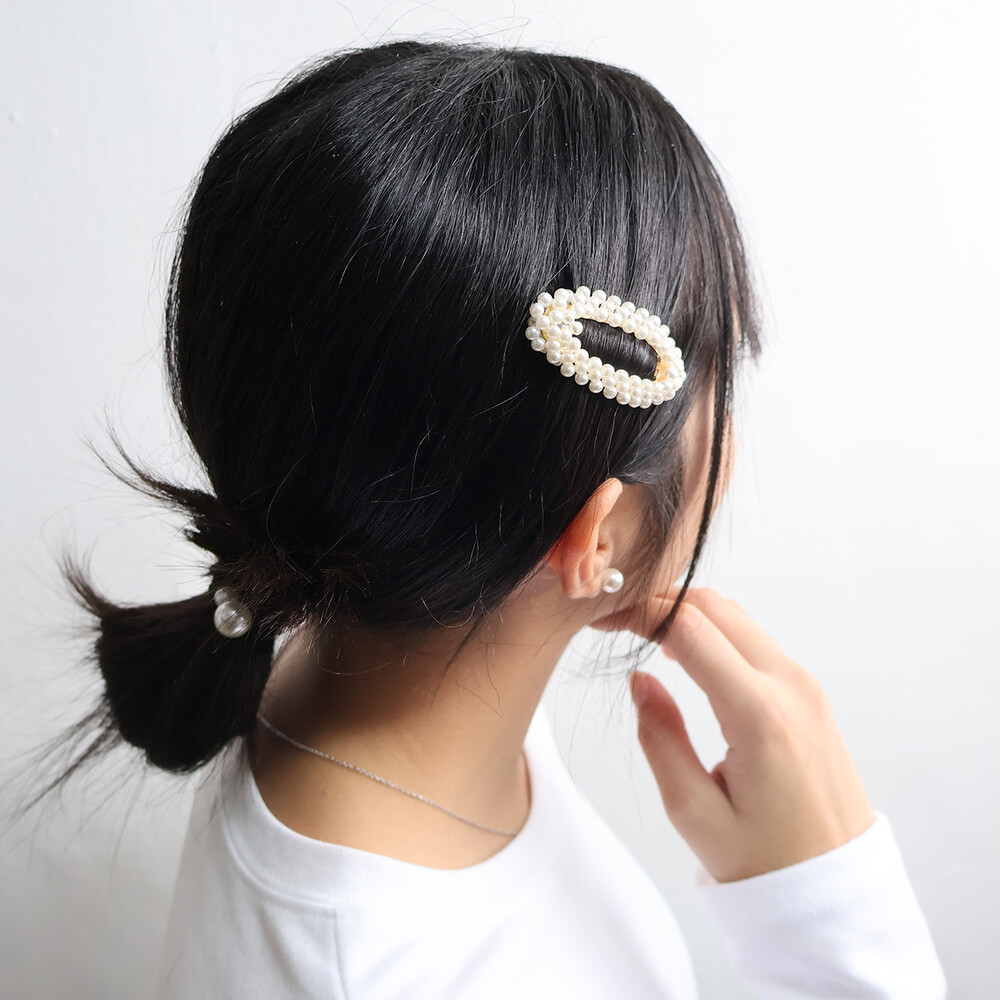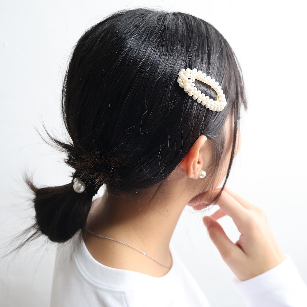 잔잔한 화이트 진주 포인트가 얼굴을 화사하게 밝혀주는 우아한 헤어핀입니다.