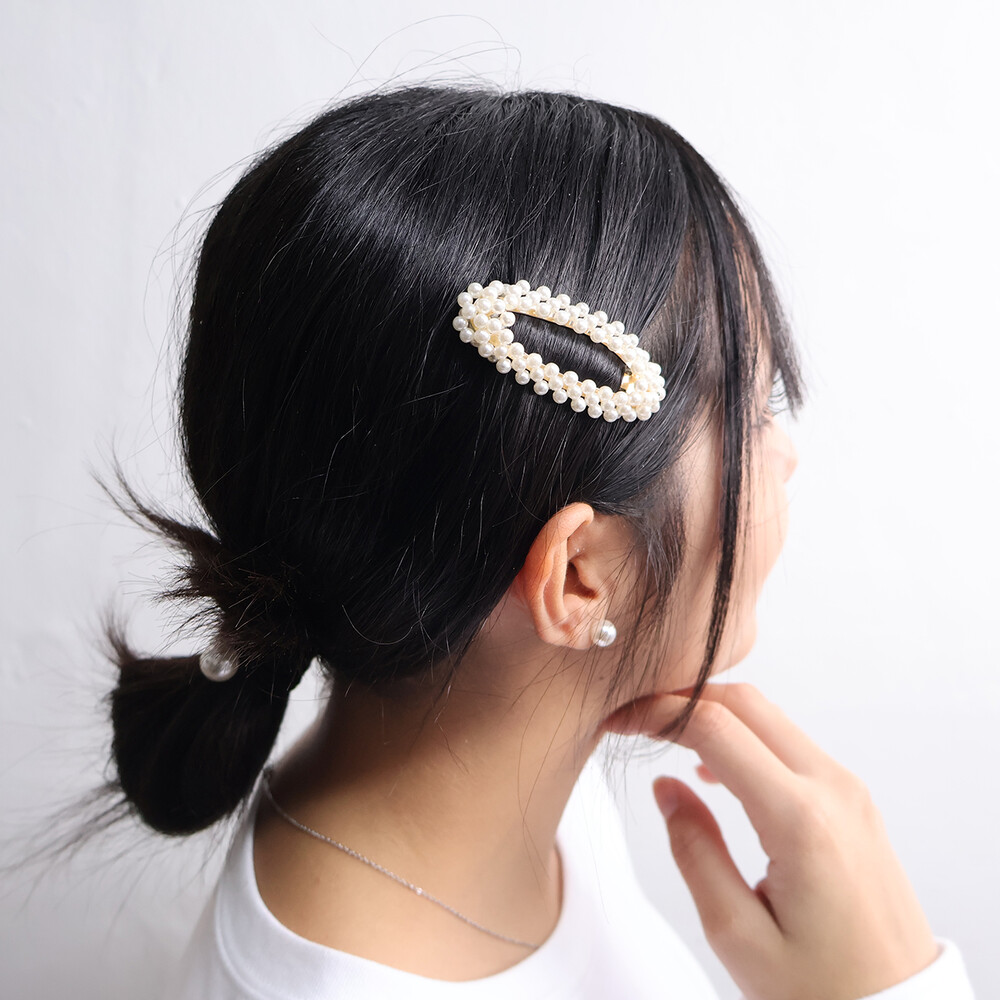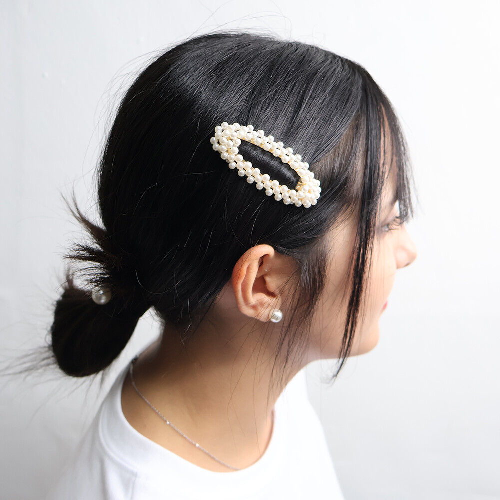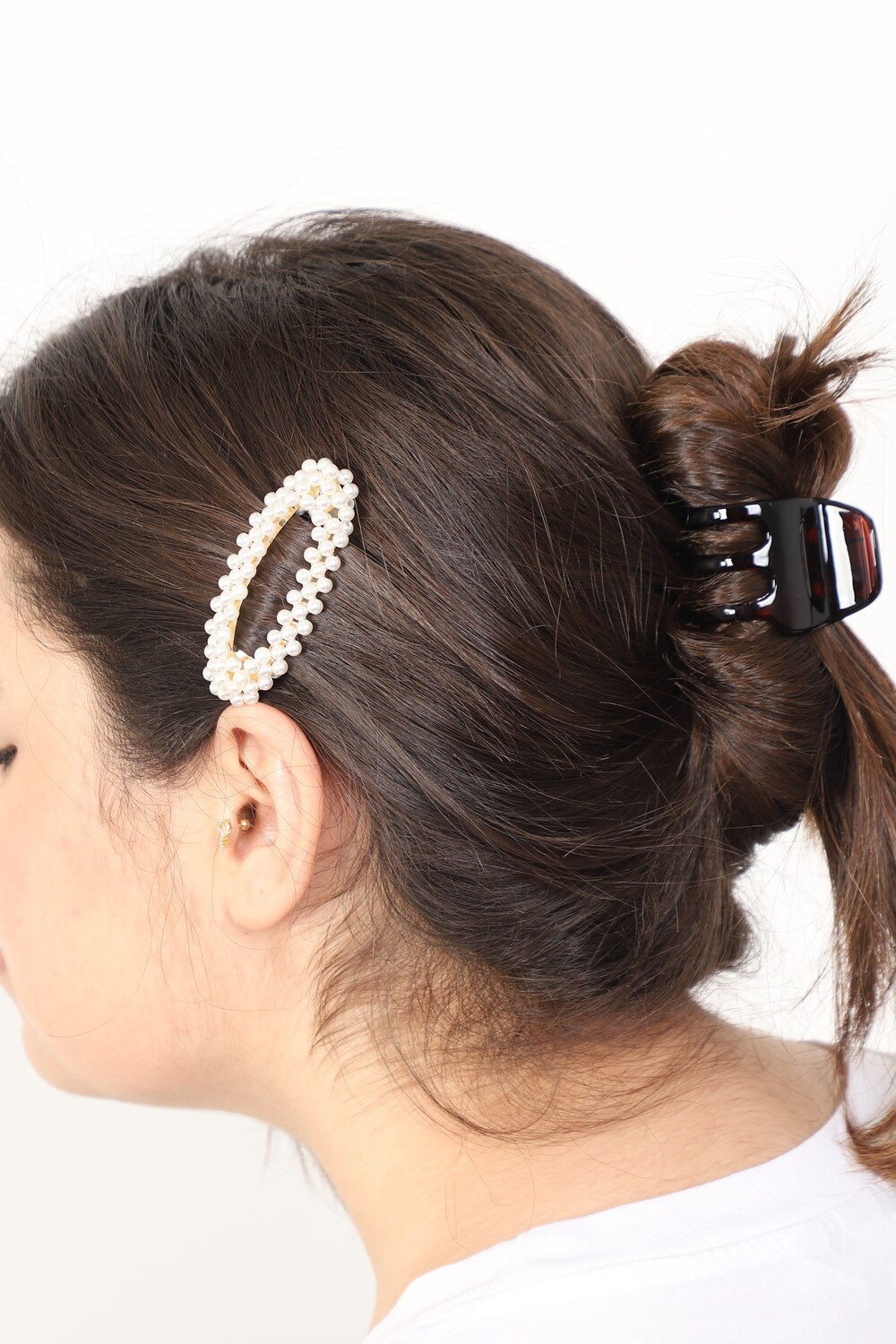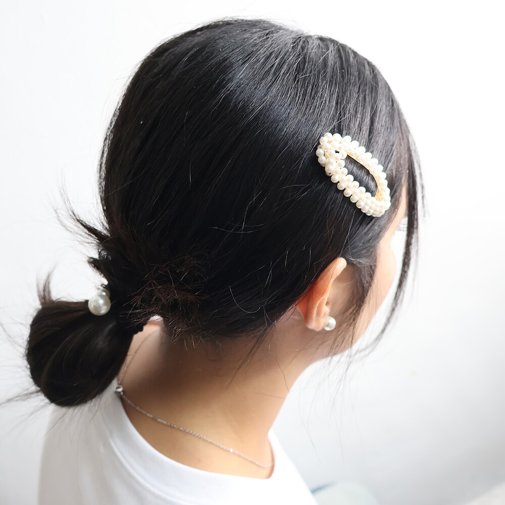 잔잔한 화이트 진주 포인트가 얼굴을 화사하게 밝혀주는 우아한 헤어핀입니다.