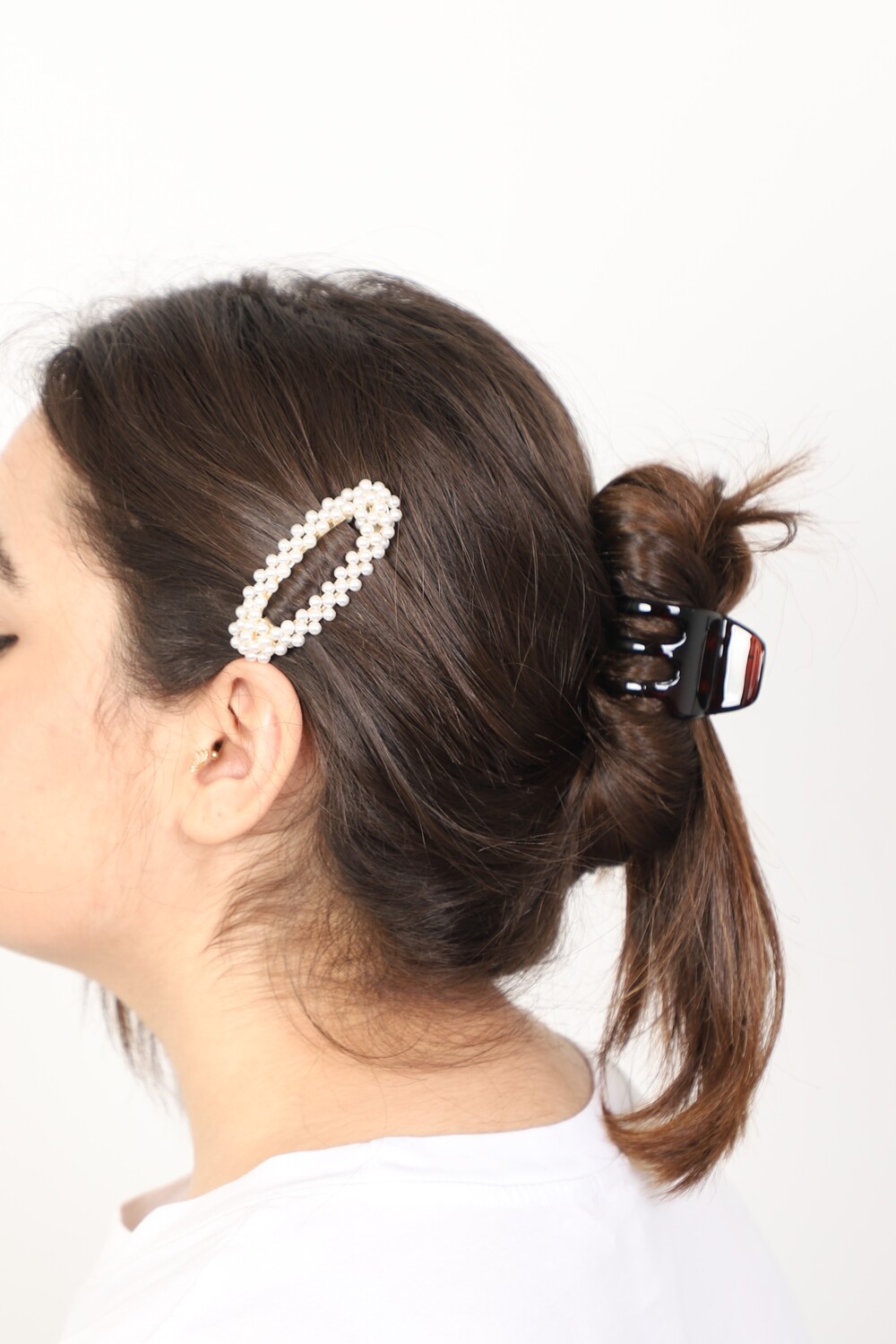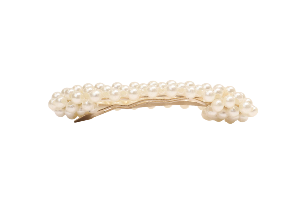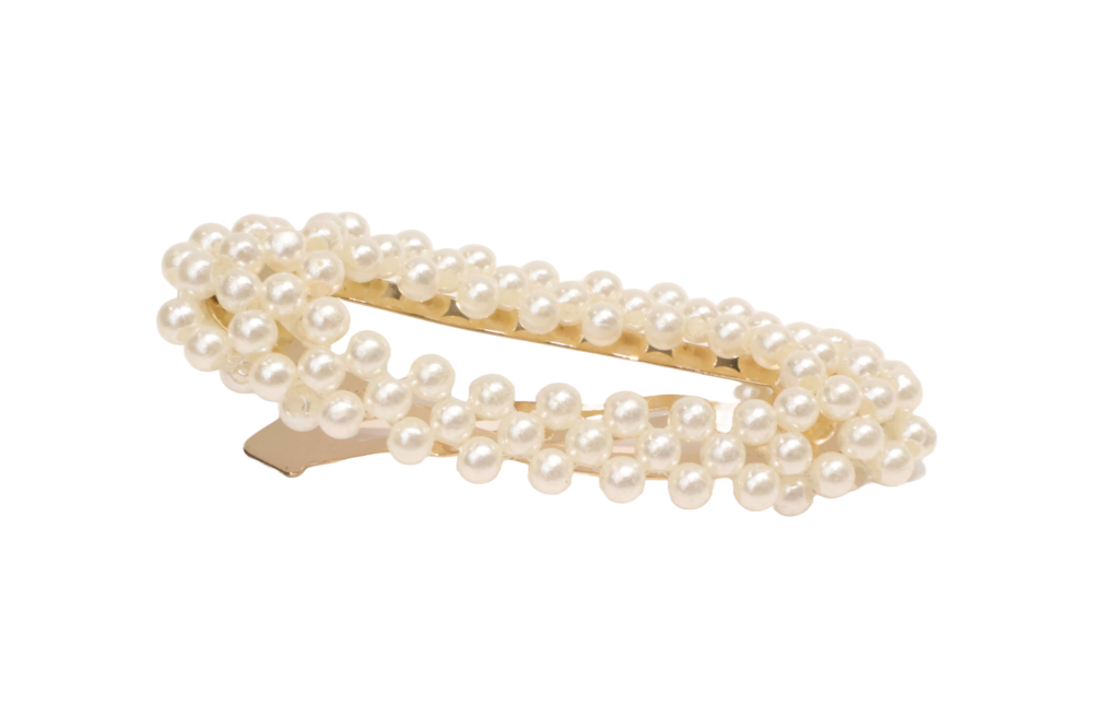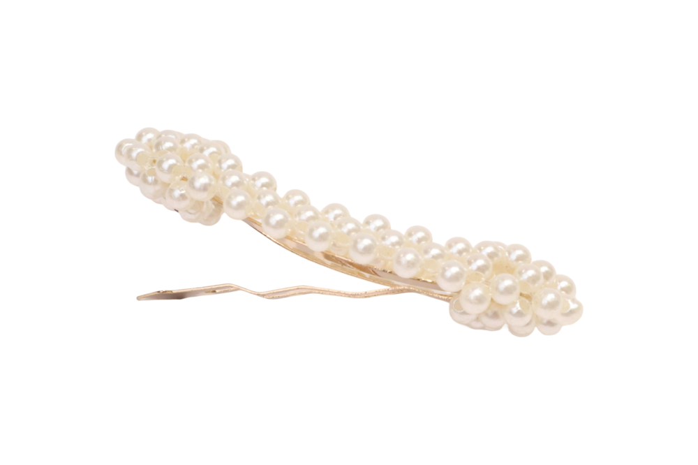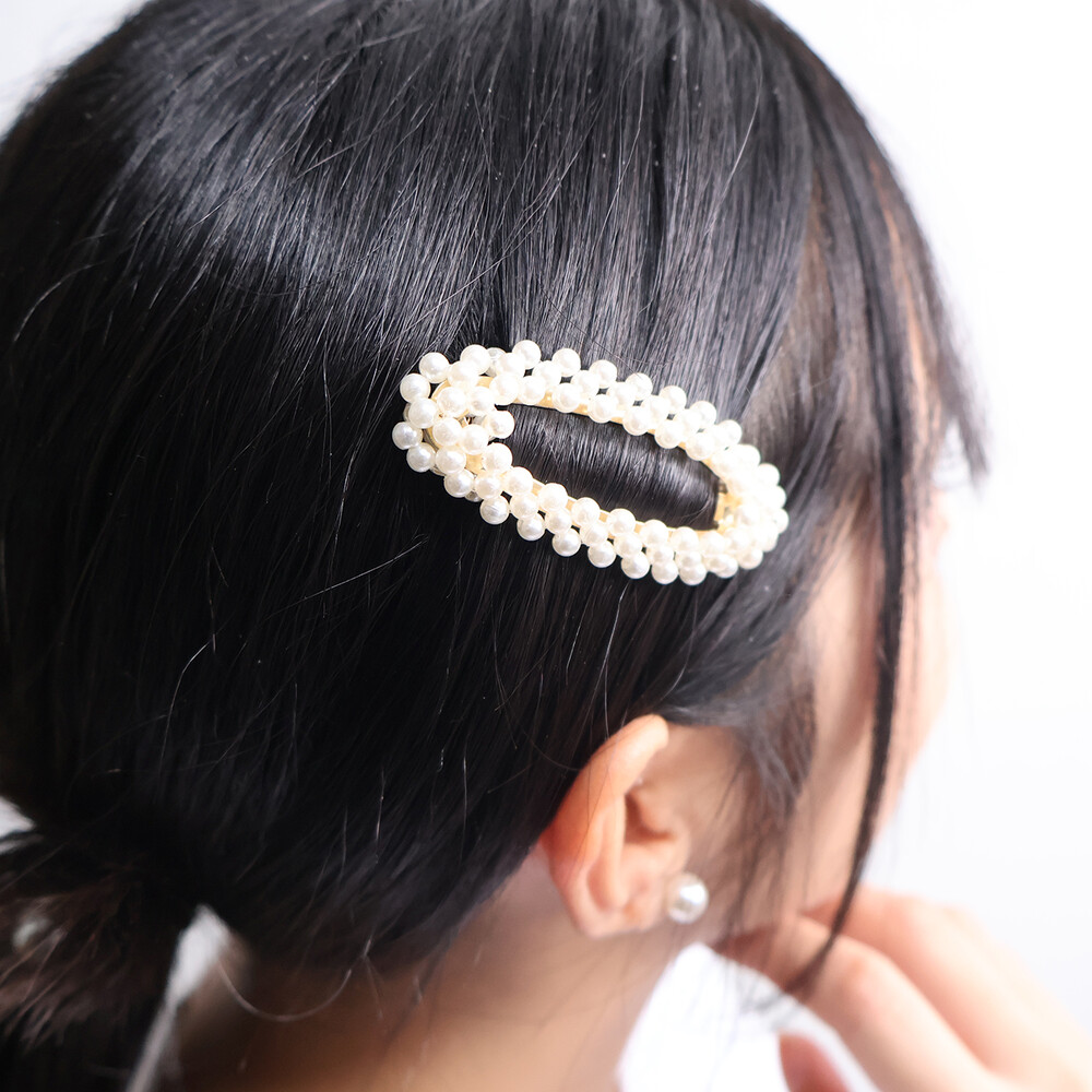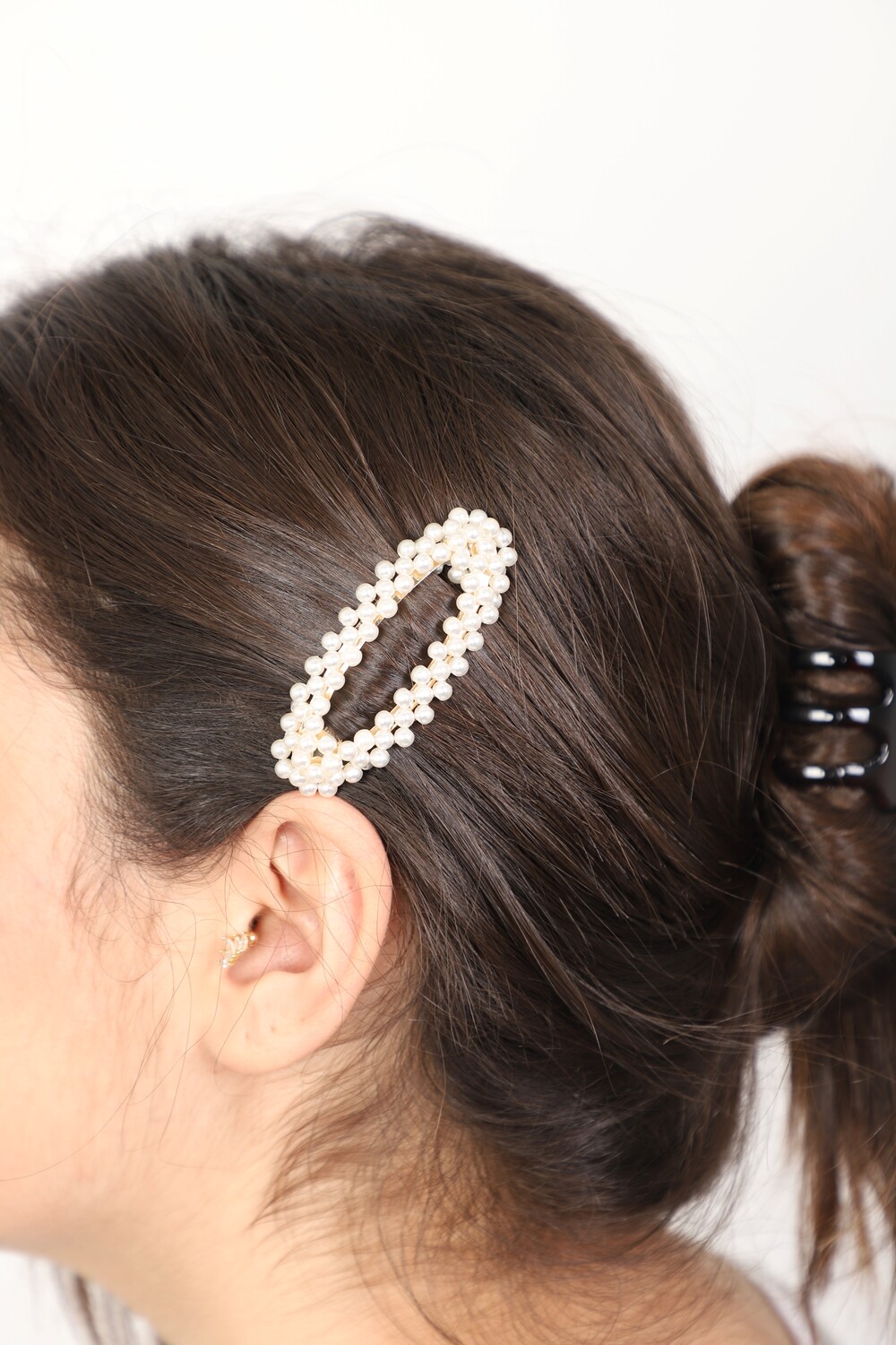 잔잔한 화이트 진주 포인트가 얼굴을 화사하게 밝혀주는 우아한 헤어핀입니다.