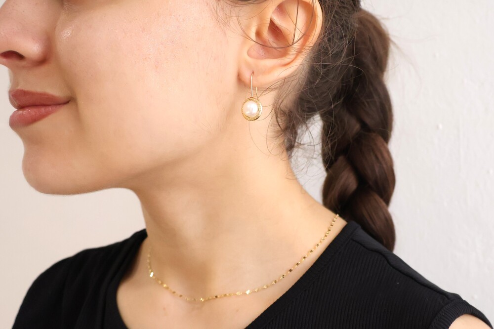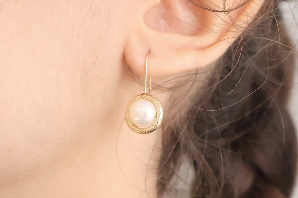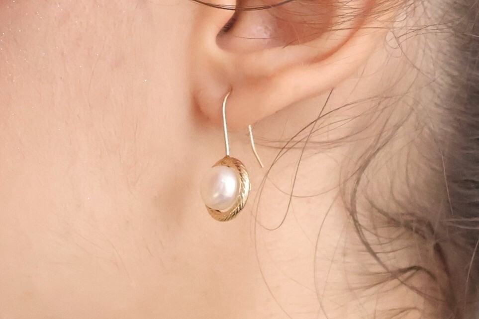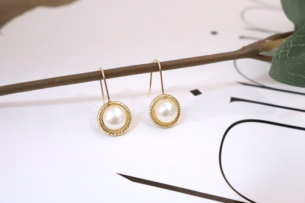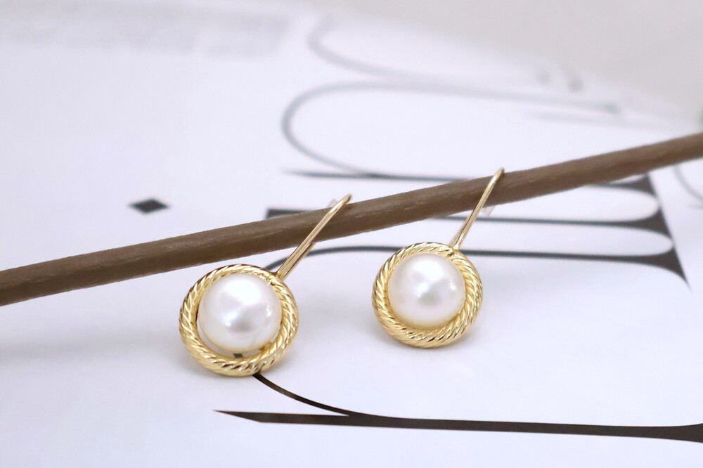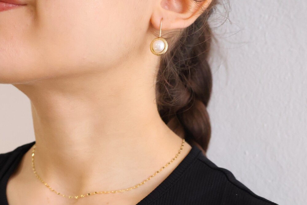 포인트처럼 자리 잡은 천연담수진주가 조화를 이루는 디자인입니다.