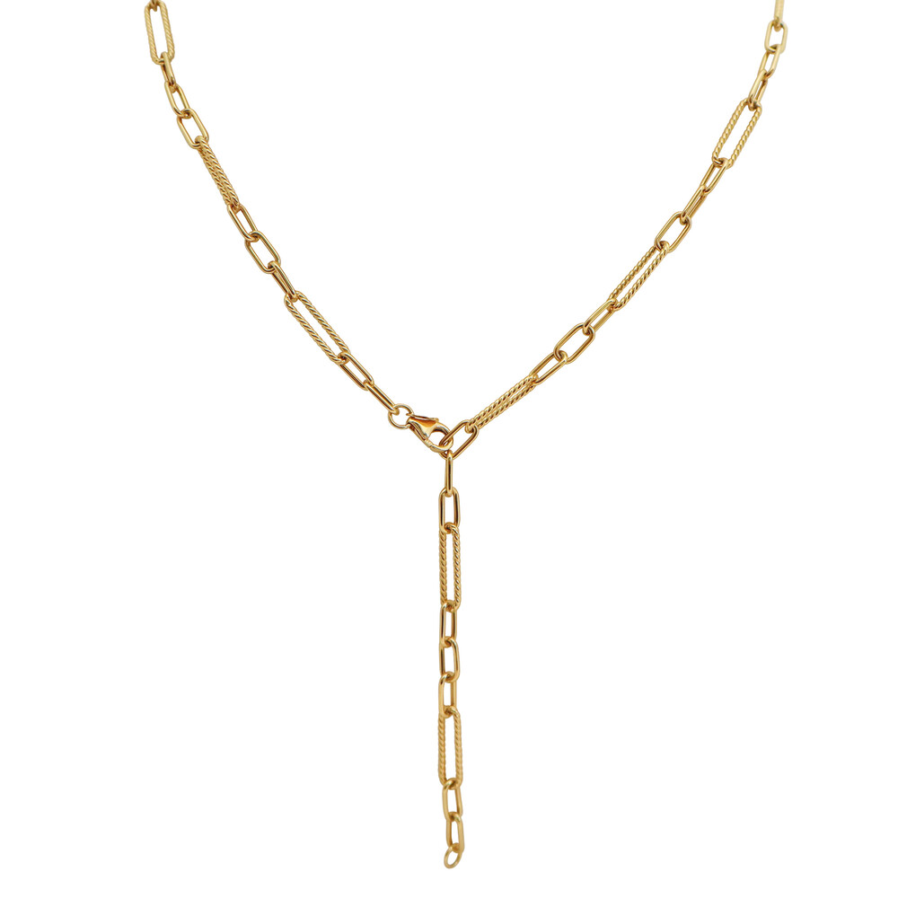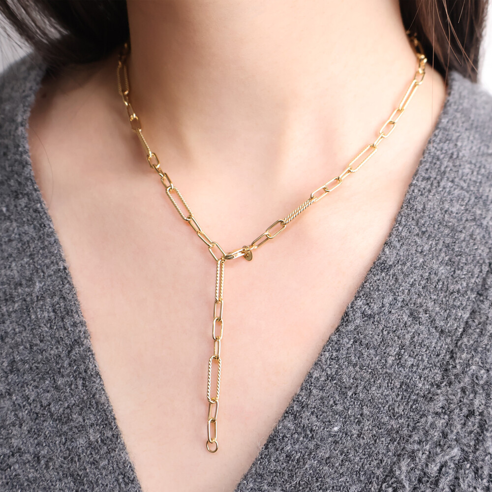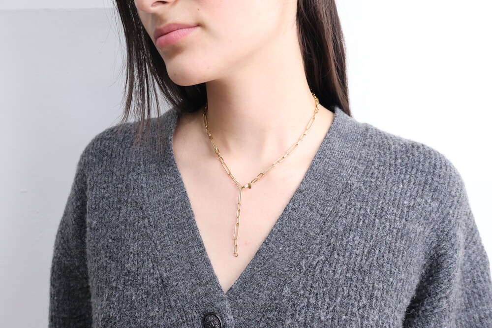 14K 골드 체인이 자연스럽게 떨어지는 Y자 디자인은