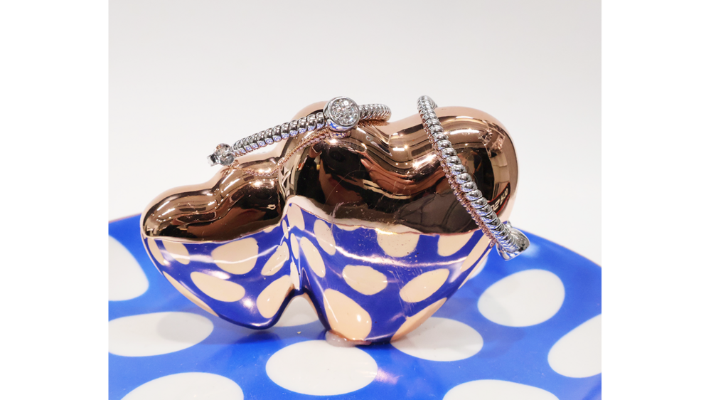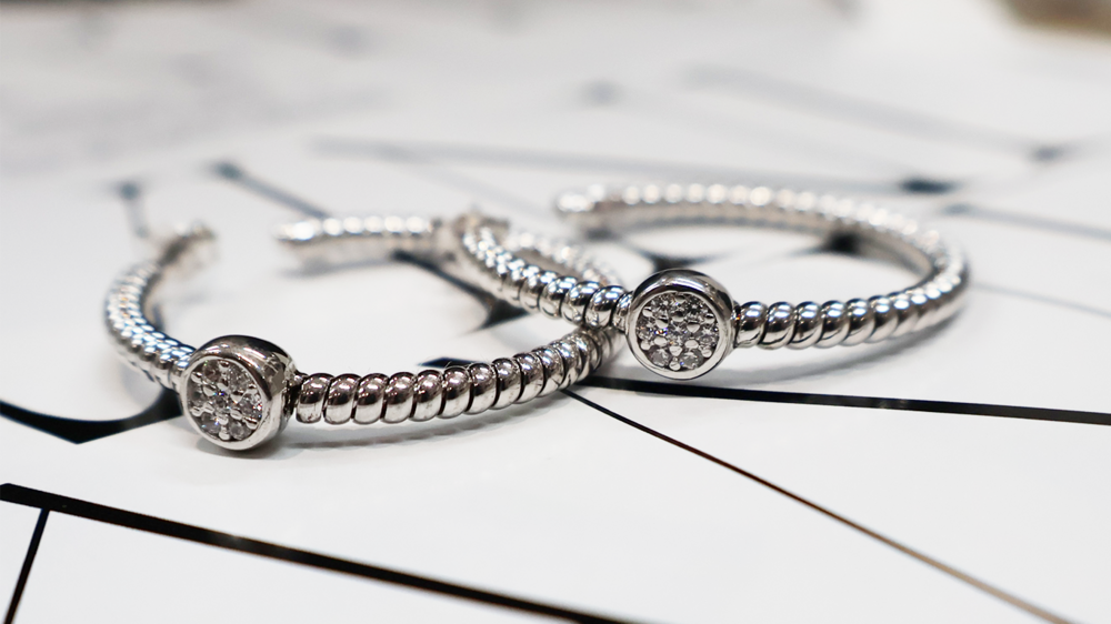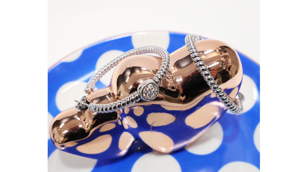 표면 전체에 균일하게 감긴 코일 텍스처가 빛을 따라 유연하게 반사되어착용 시 한층 더 입체감 있는 윤곽을 연출 해 줍니다.