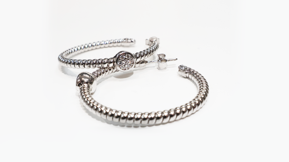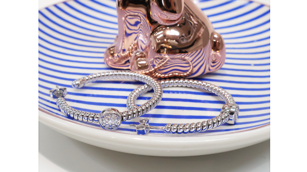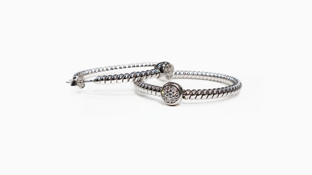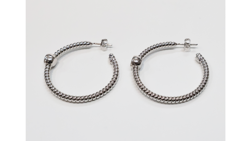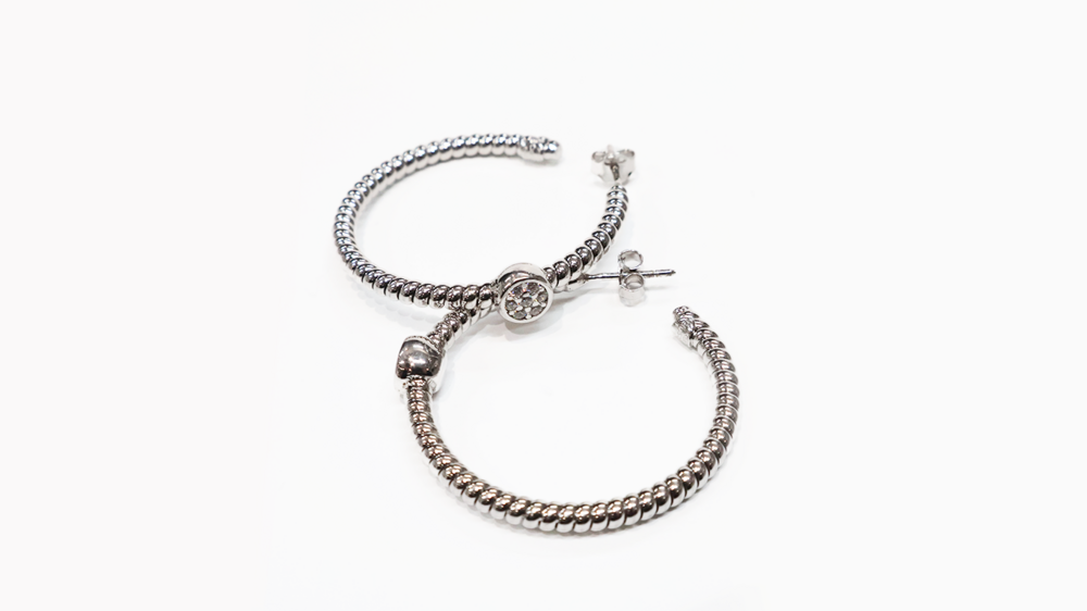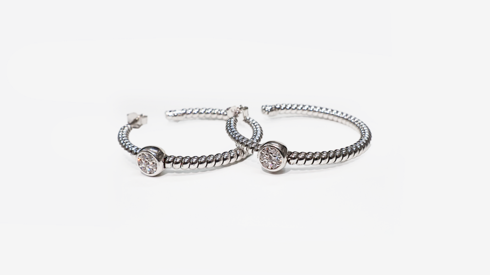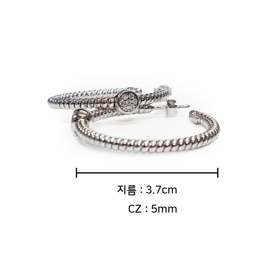 고급스러운 실버 컬러의 바디에 꼬임 디테일이 더해진, 세련된 감각의 이어링입니다.