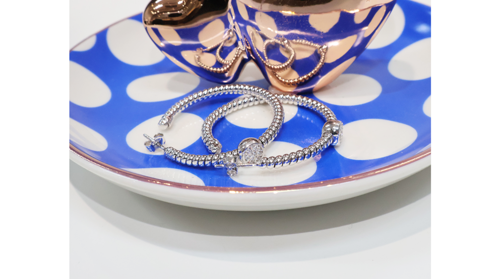 중앙에는 큐빅들이 섬세하게 세팅되어 있어 과하지 않으면서도 은은한 포인트가 되어줍니다.