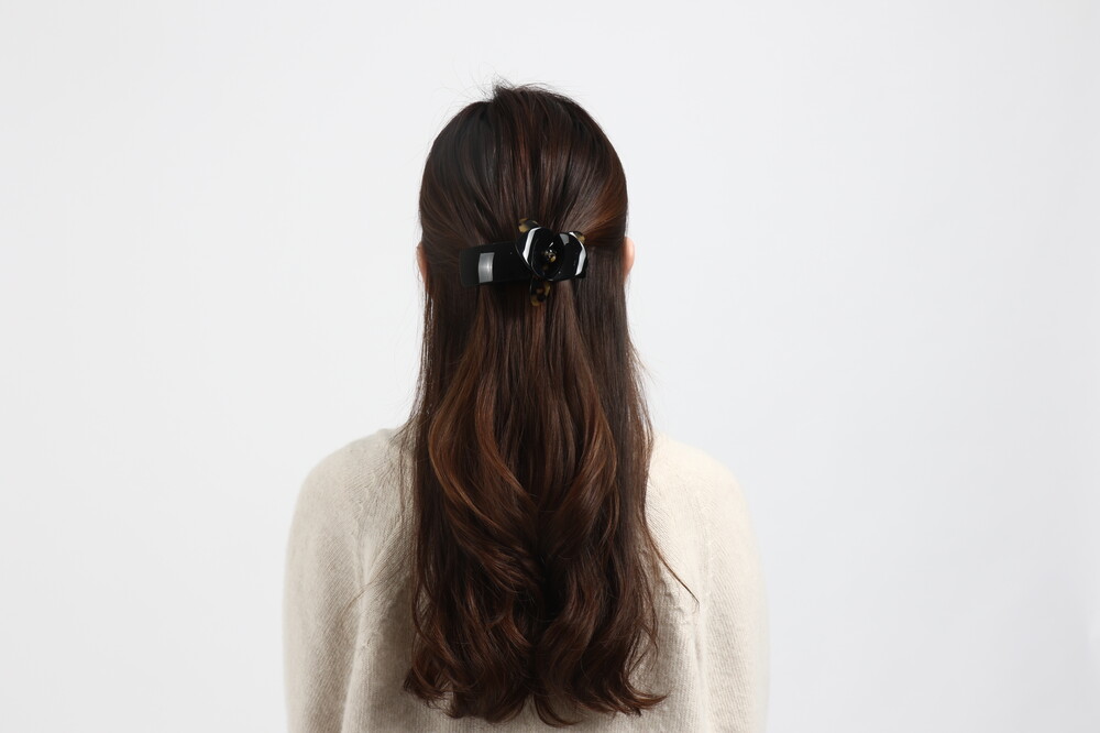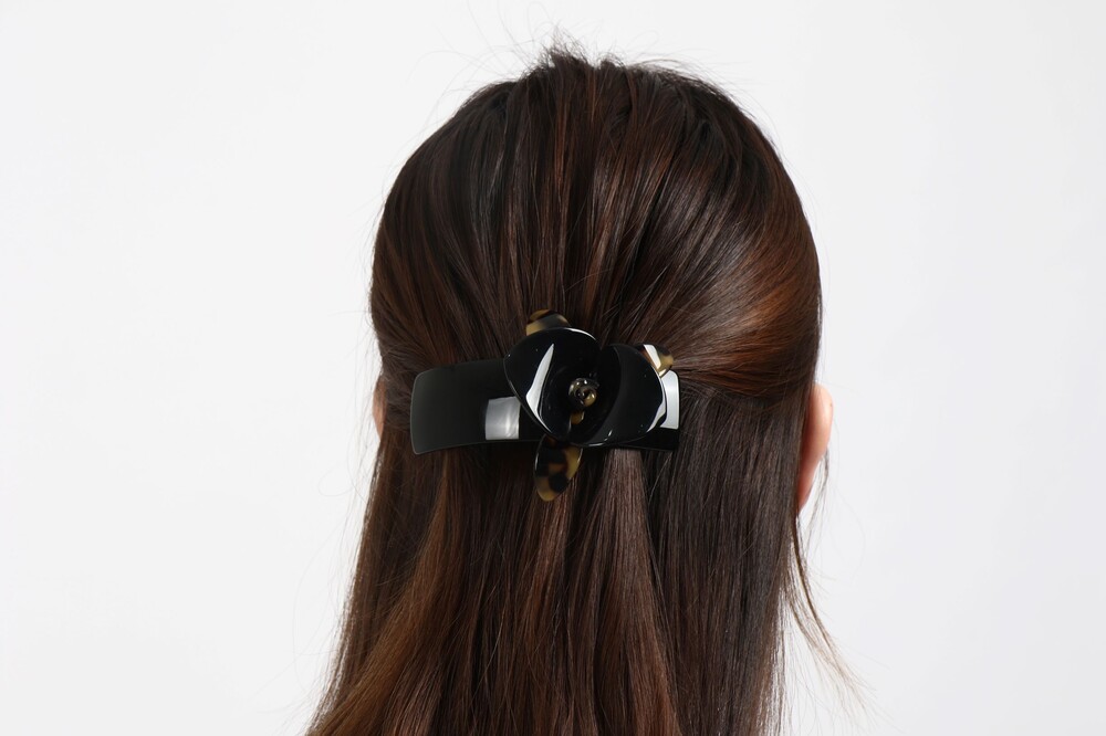 호피무늬 도쿄쉘 플라워 헤어클립입니다.