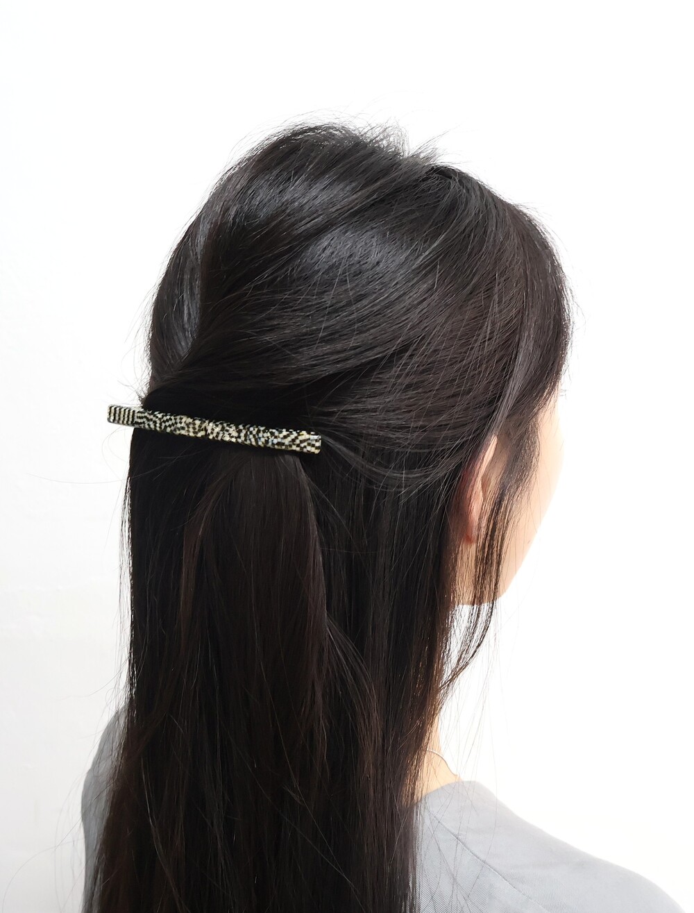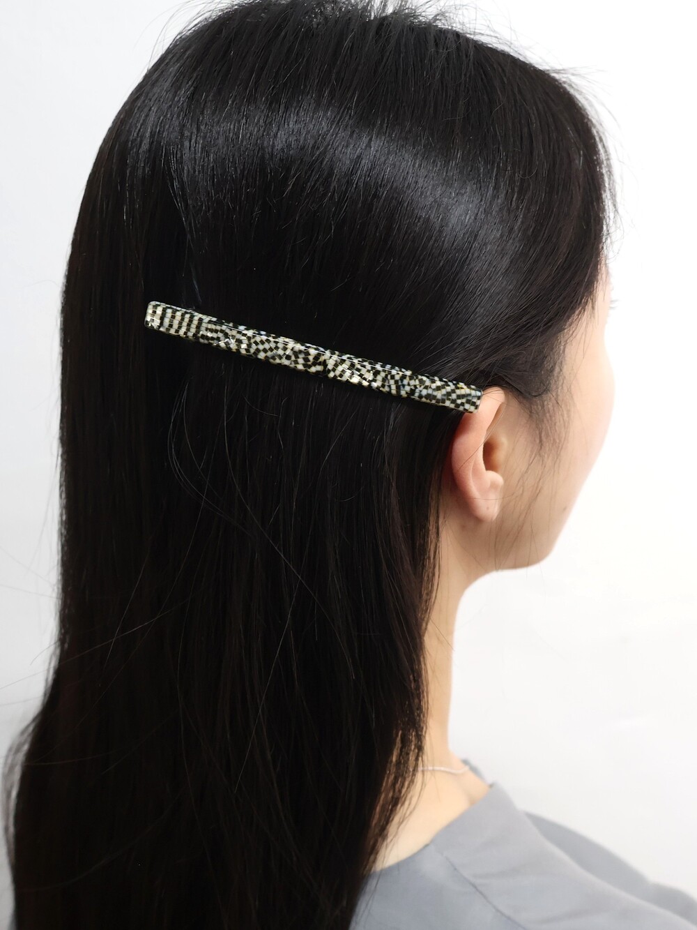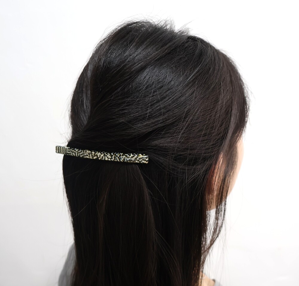 빛의 조각을 닮은 모자이크 패턴이 감각적인 11cm 롱 헤어클립입니다.