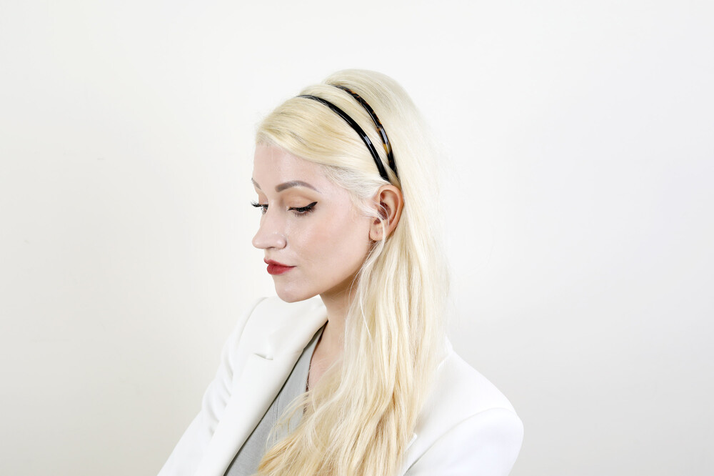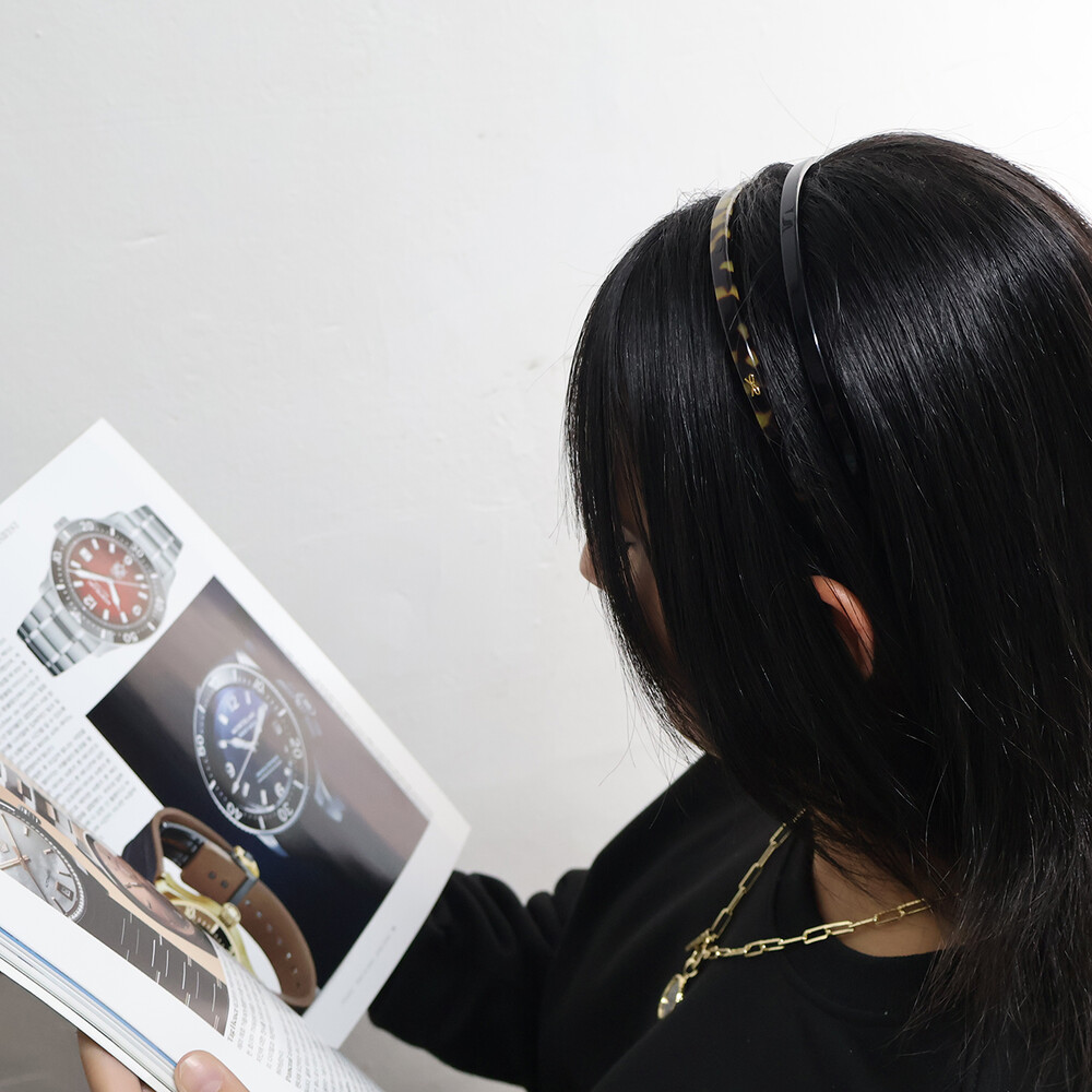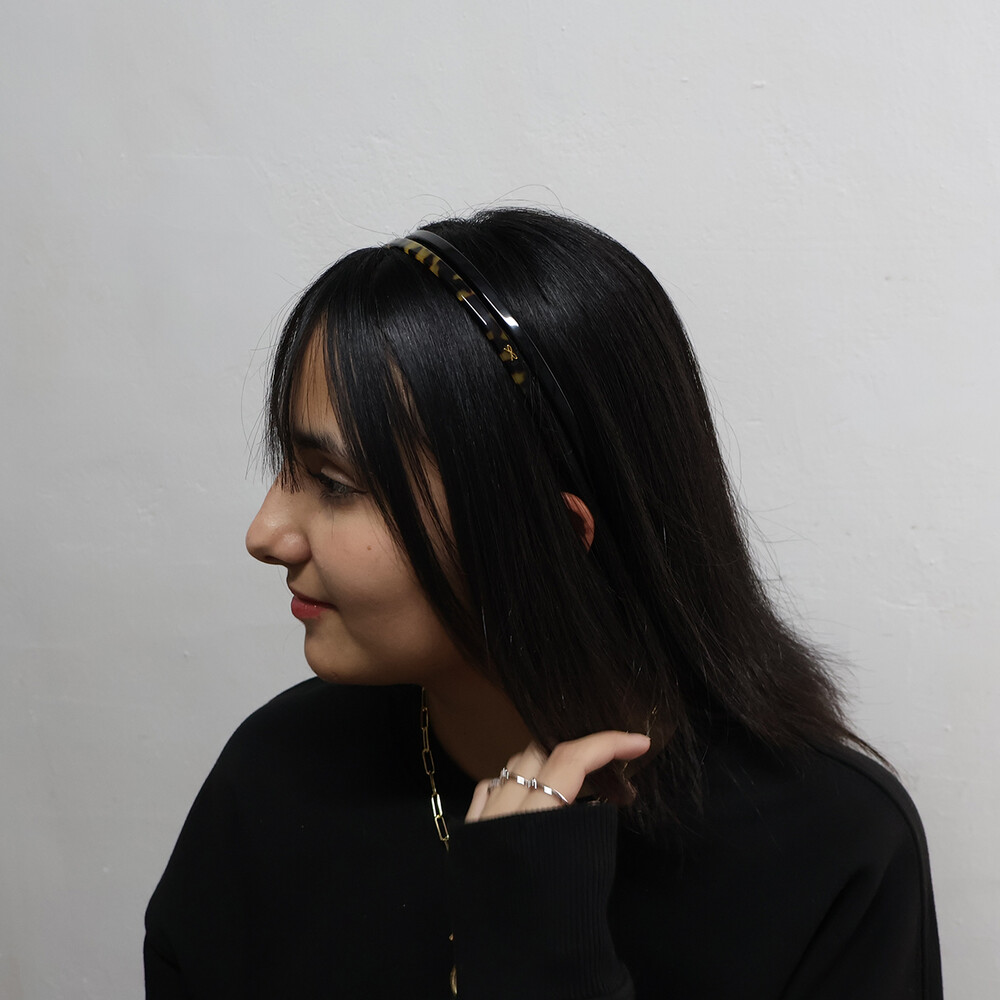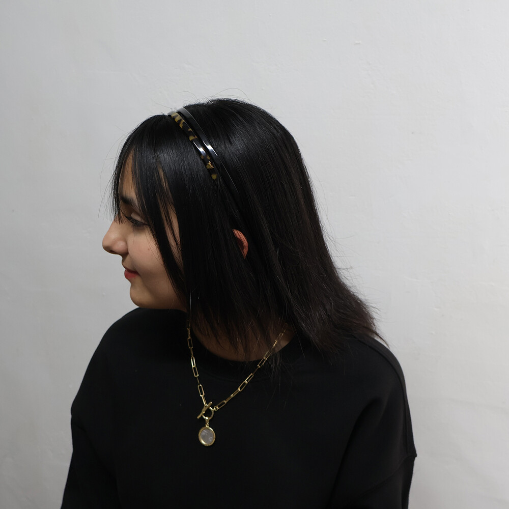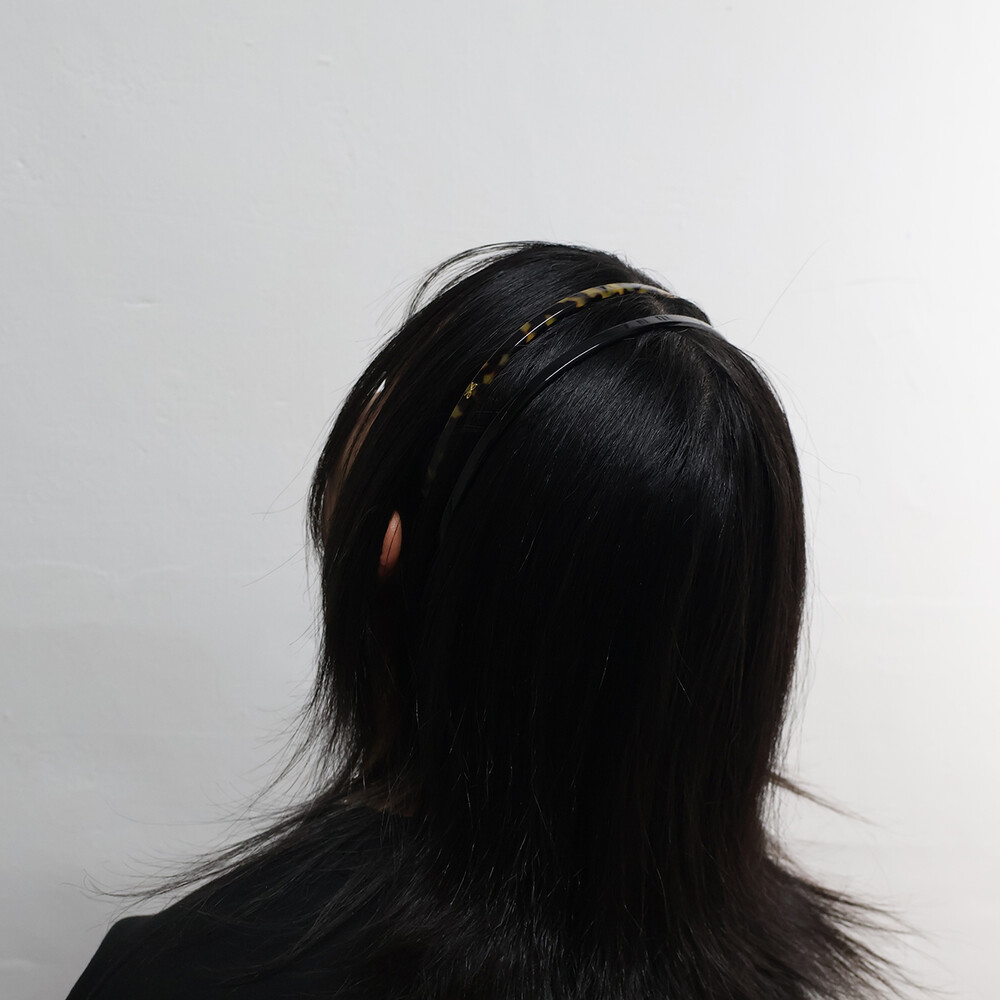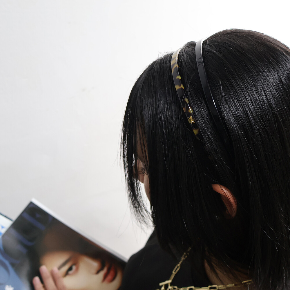 도쿄쉘 패턴이 적용된 고급스러운 블랙 컬러의 머리띠입니다.