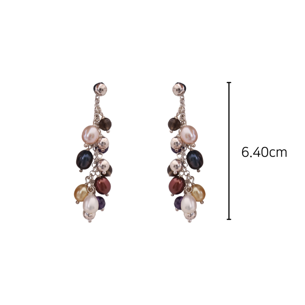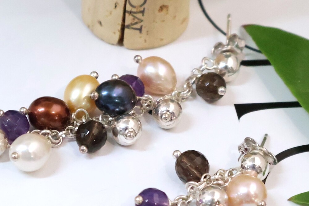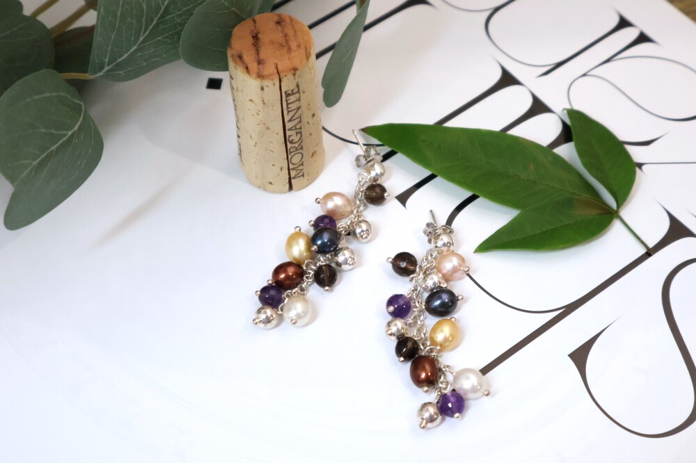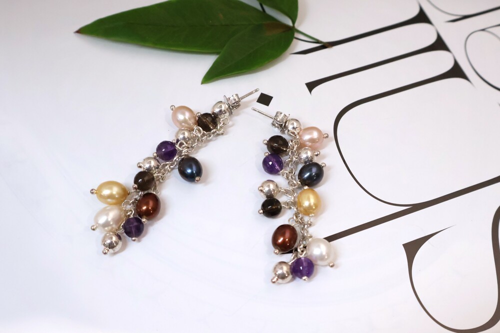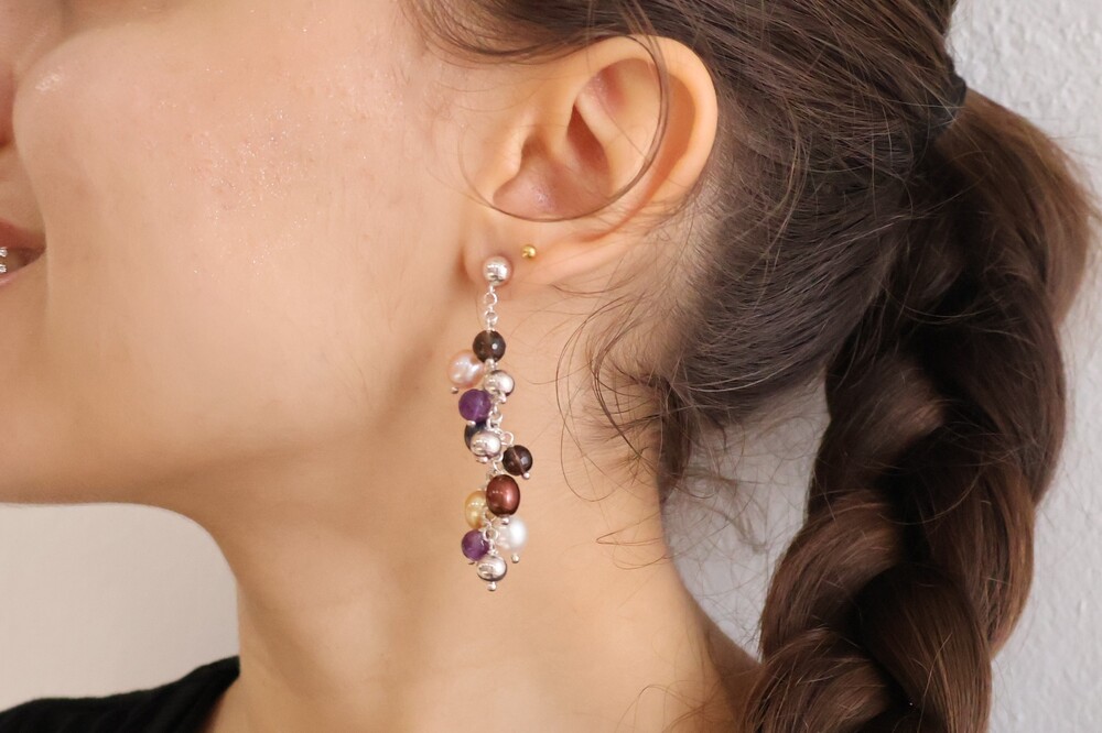 사르르 녹아드는 듯한 색감의 진주들이 조화롭게 어우러진 멀티컬러 진주 귀걸이입니다.