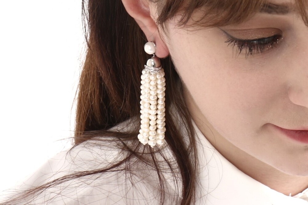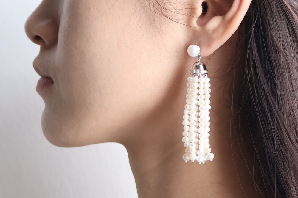 여러 개의 미니 진주가 테슬처럼 달려 고급스러움을 포인트로 가지고 있습니다.