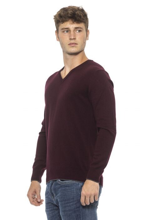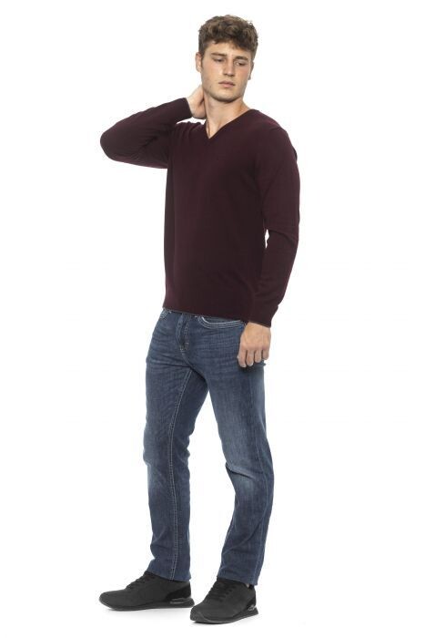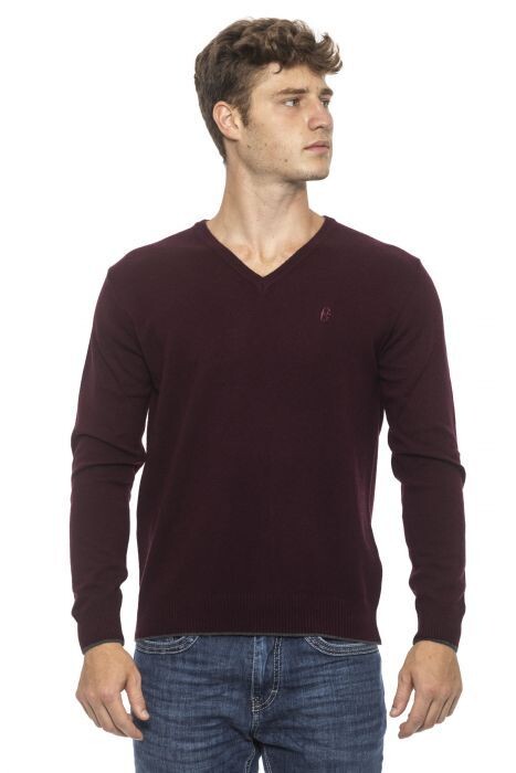 Conte of Florence 버건디 브이넥 니트