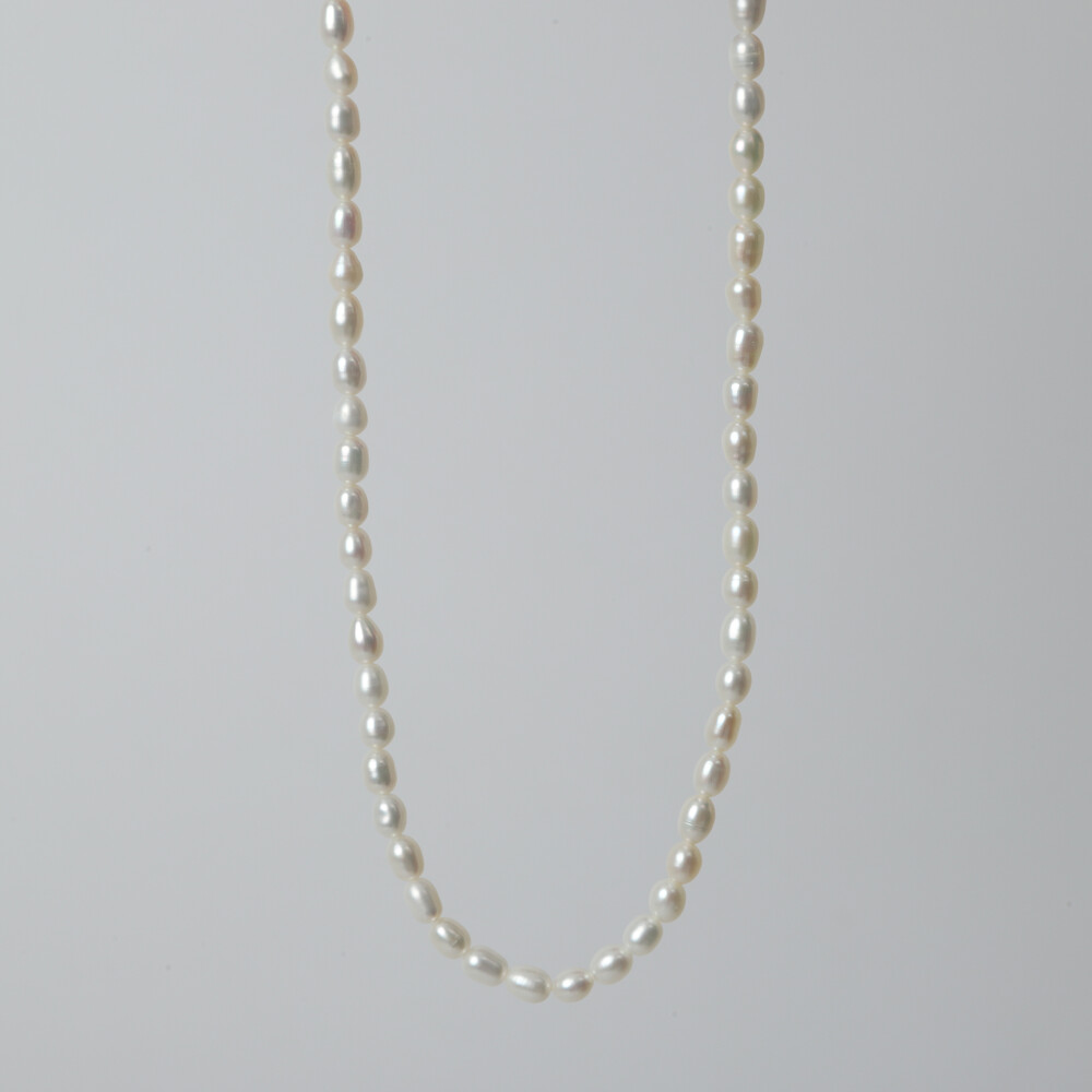 컷팅이나 가공을 하지 않은 천연 담수진주로 제작한 목걸이입니다.