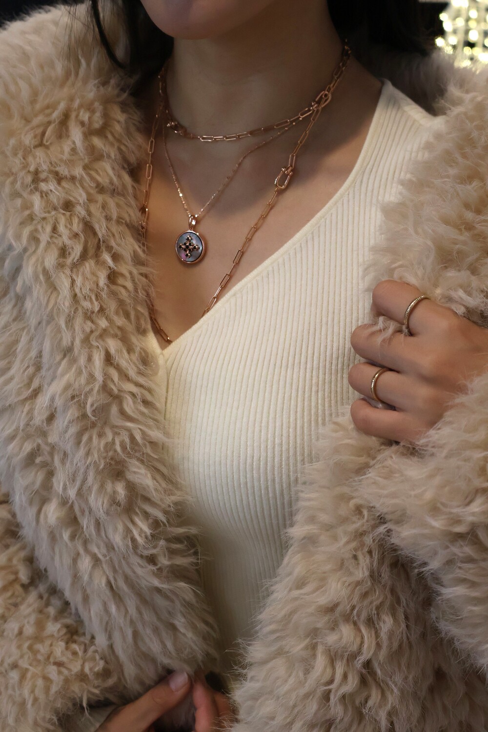 아래와 같이 MOST12 페로 디 카발로 목걸이와 레이어드 하시면 더욱 고급스러운 무드를 연출하실 수 있습니다.