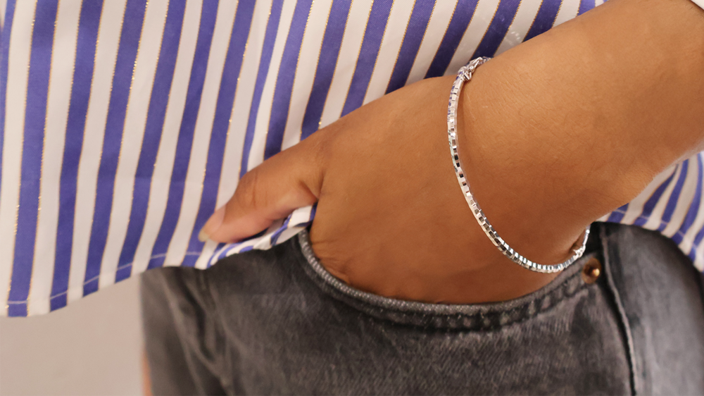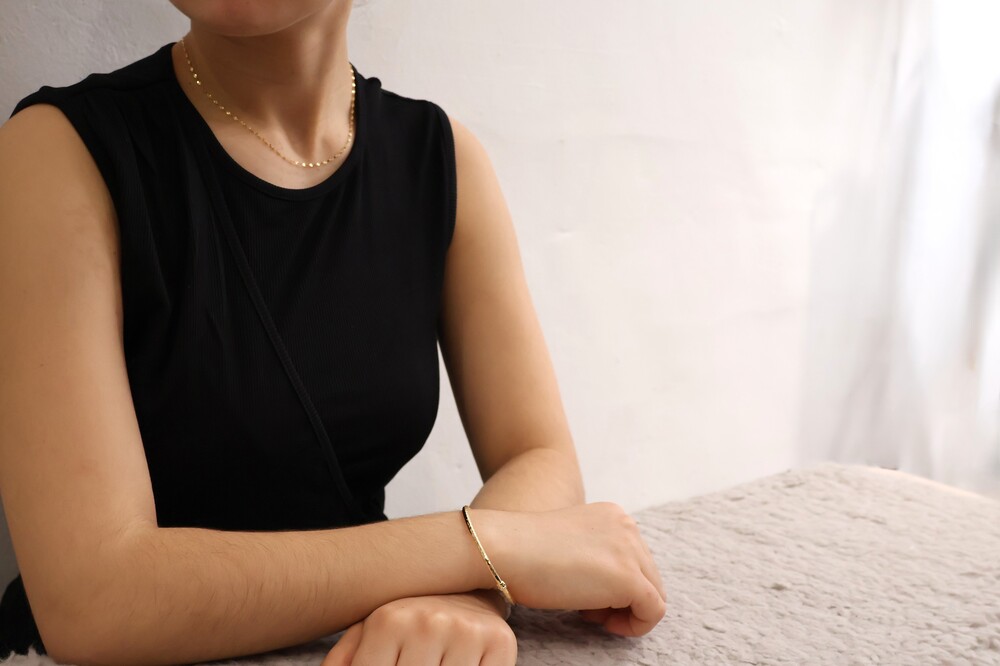 단독 착용 시 세련된 포인트 액세서리로,다른 팔찌나 시계와 함께 레이어드해도 과하지 않고 자연스럽게 어우러집니다.