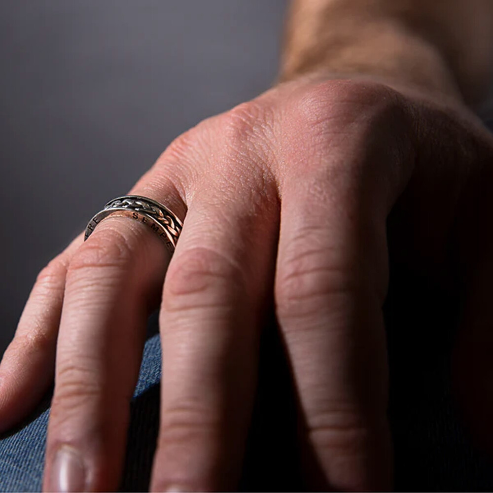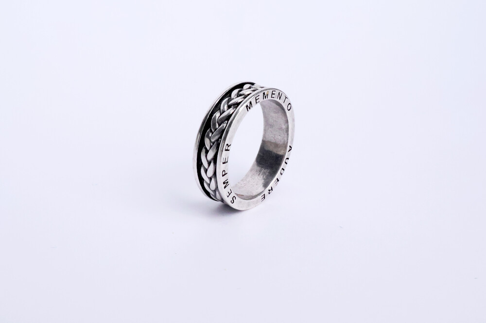 반지 중앙에 입체적인 체인 패턴이 삽입되어 있어 유니크한 느낌을 줍니다.